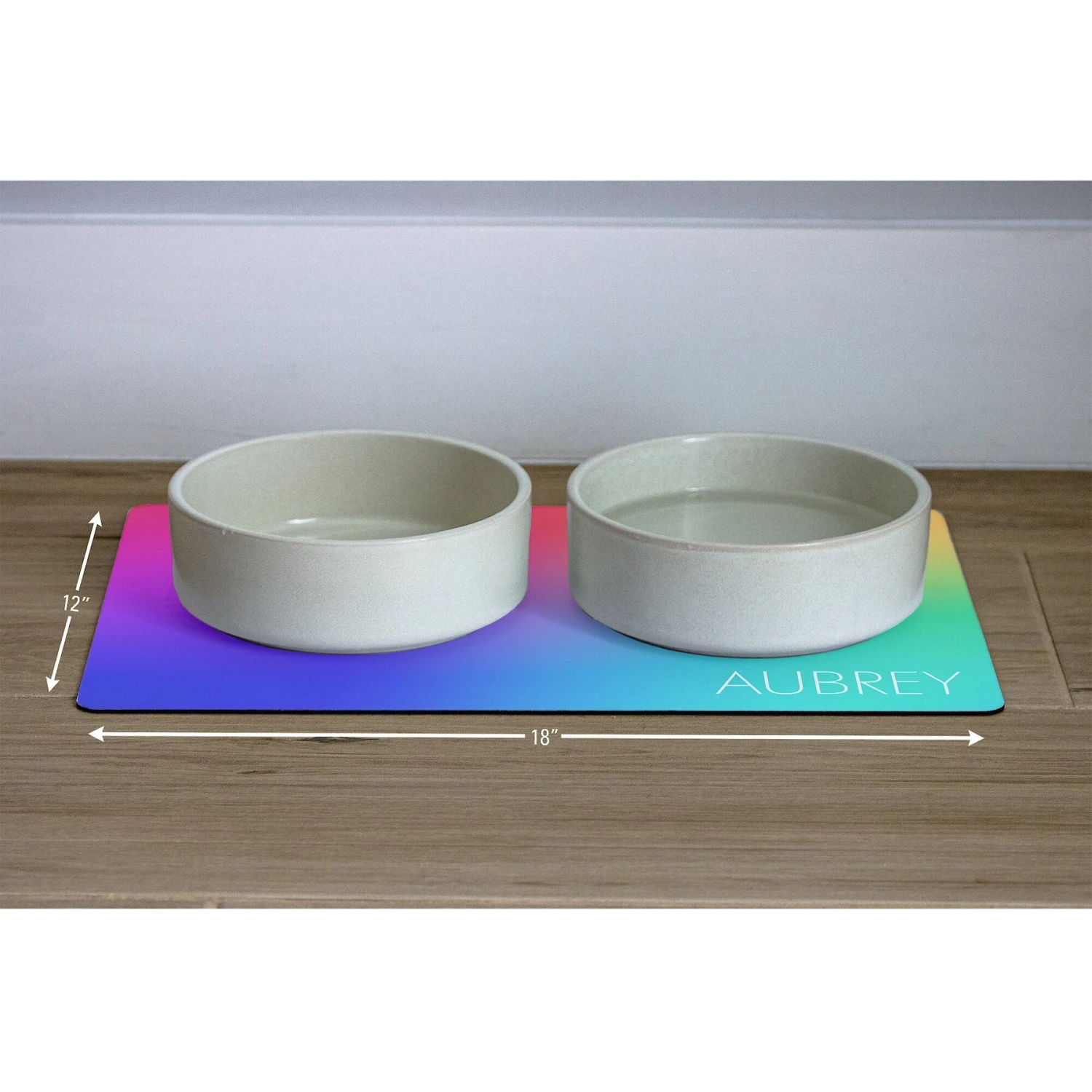 Make mealtime extra special with this 904 Custom Personalized Rainbow Watercolor Modern Dog & Cat Mat! This beautiful mat is made in the USA and is the paw-fect way to keep your floors clean and tidy all year long. It measures 12 x 18″, making it ideal for two bowls and the thick design won’t easily slide, no matter how excited your pet gets about her food! Best of all, you can have this mat personalized with your pet’s name!