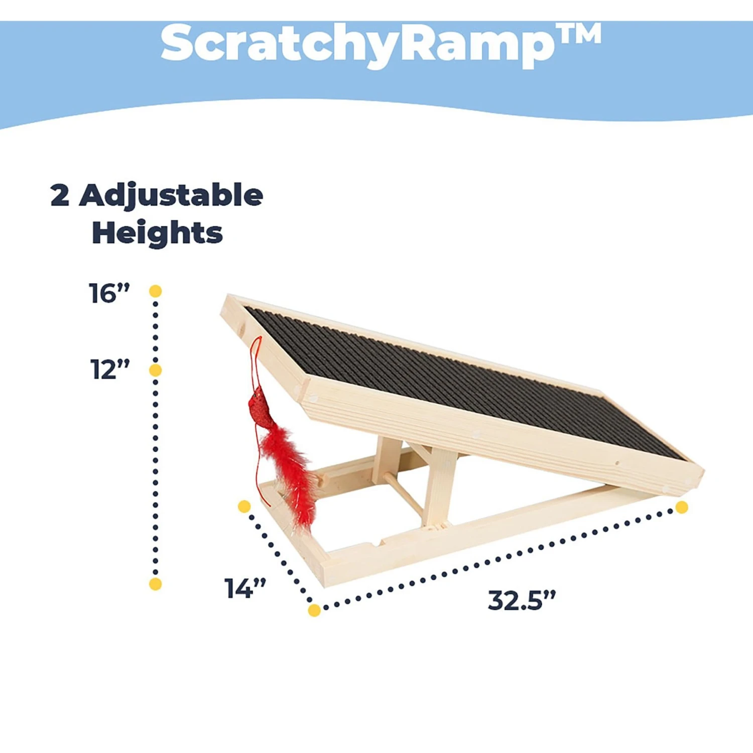 - Two-in-one wooden ramp and scratch pad features a wide, carpeted surface for safe climbing and a satisfying scratch.