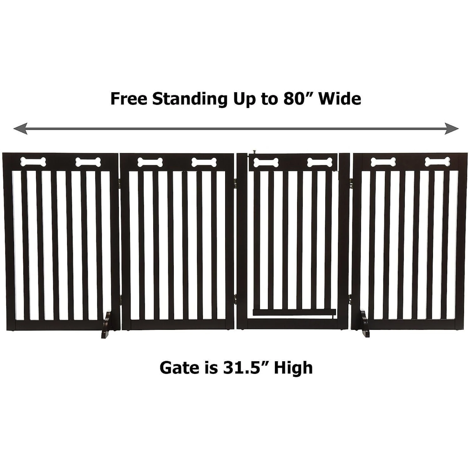 Protect certain areas of your home from your furry friend with the Arf Pets Free-Standing Walk-Through Wood Dog & Cat Gate. It features four foldable panels and one gate door for your paw-tner to pass through. The sturdy wood construction of this gate ensures safety for your little one and stabilizing support feet keep it in place. The interconnecting panels can also form an enclosed pen to keep your companion contained. The rich espresso finish of Arf Pets Free-Standing Walk-Through Wood Dog & Cat Gate fits with any home décor.