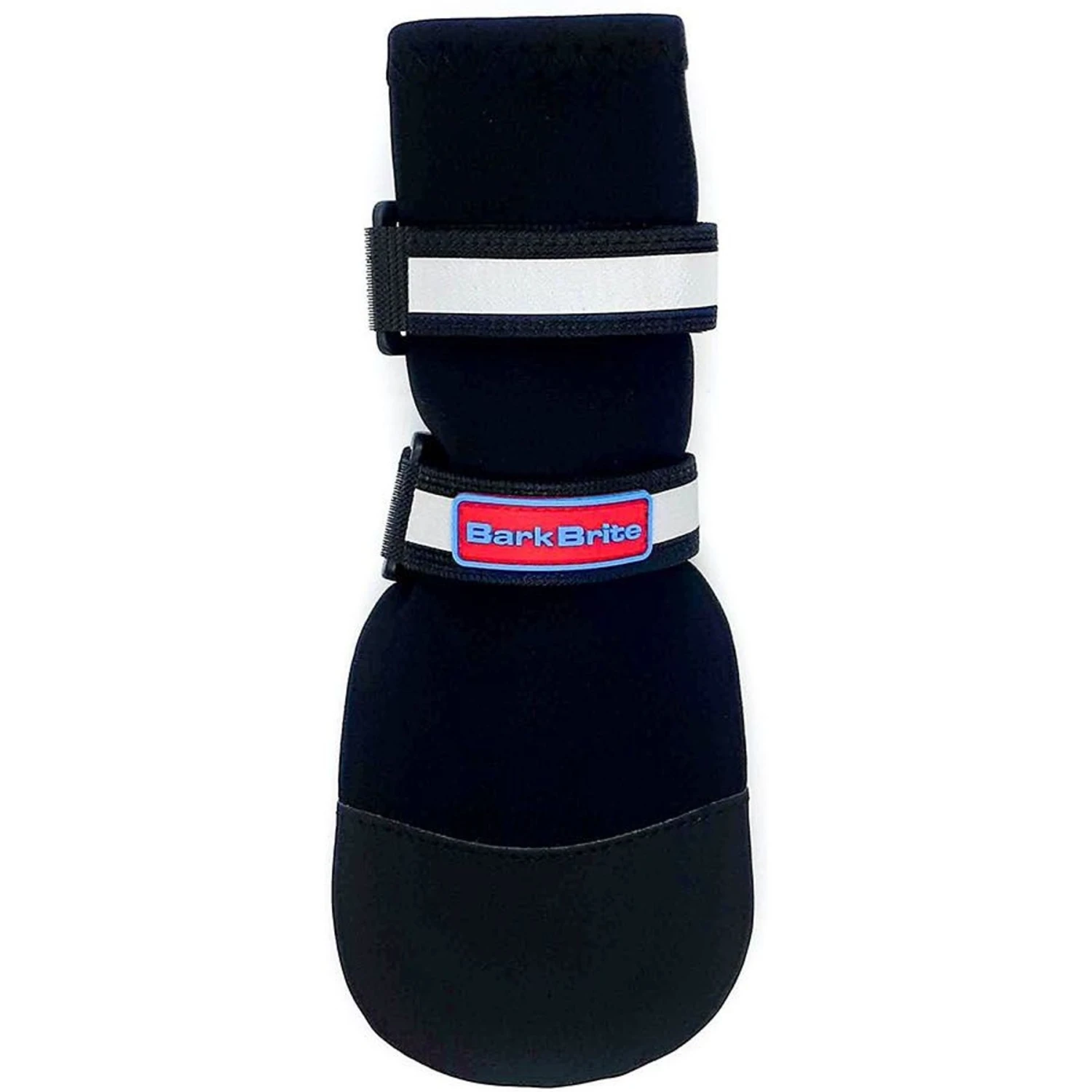 Bark Brite All Weather Reflective Neoprene Dog Boots, 4 count, Large — Don’t let the weather stop you from venturing into the great outdoors. Thanks to the neoprene cradle of All-Weather dog boots from Bark Brite, you can protect your best friend’s paws and have a safe trip—no matter the elements. These superior shoes adapt to the shape of your canine’s feet, ensuring a snug and comfortable fit while shielding paws from extreme temperatures, rocks and more. Scorching sidewalks and frozen streets don’t stand a chance against these thick, non-slip soles! Whether it’s the dead of winter or the height of summer, your furbaby’s feet will be protected. Plus, with reflective straps, they’re easy to take on and off—and even help your BFF stand out at night. After all, when it comes to your family, safety comes first.