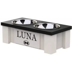 Frisco Premium Wood Elevated Stainless Steel Double Diner Dog & Cat Bowl, Black, 3 Cup