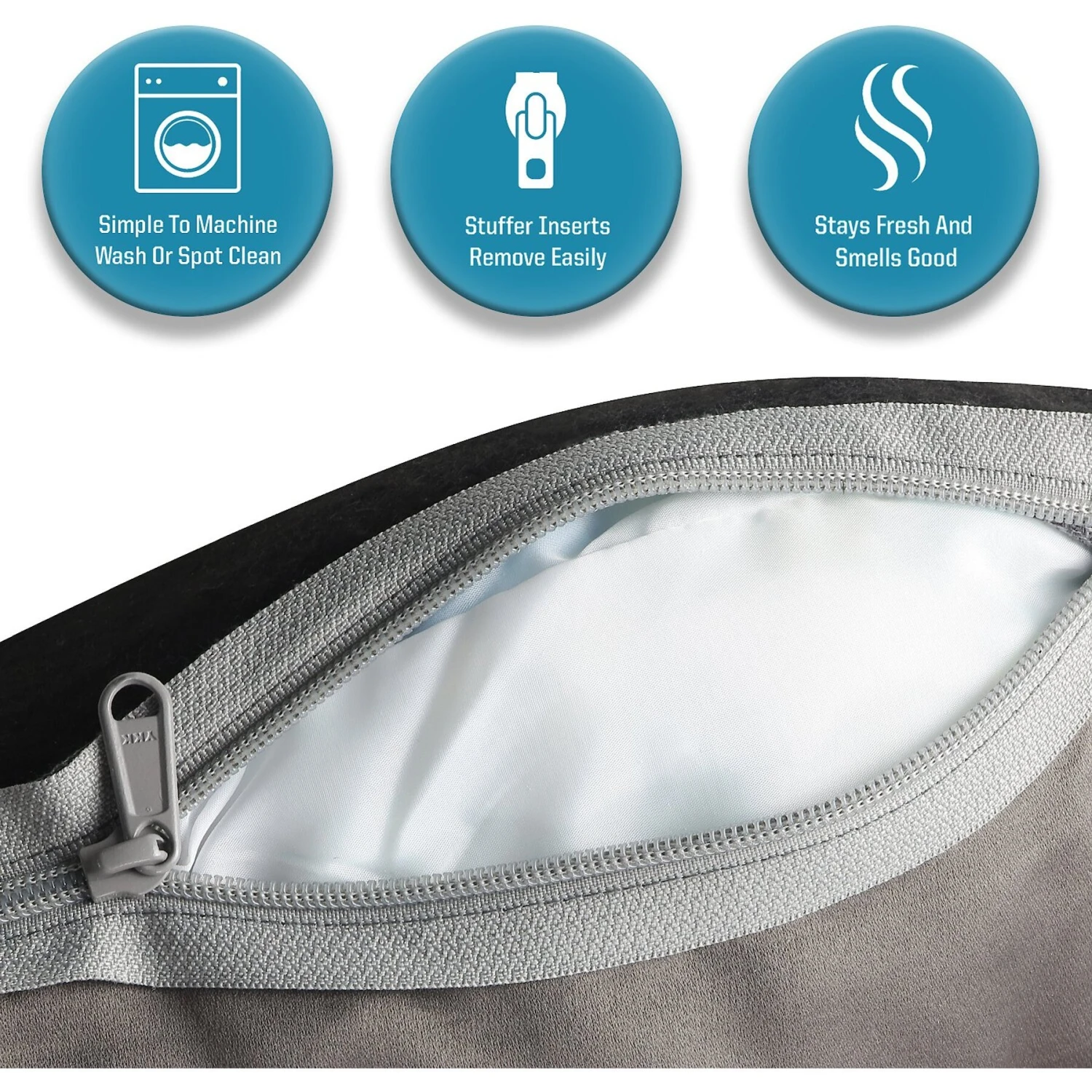 place cushion insert into bed
