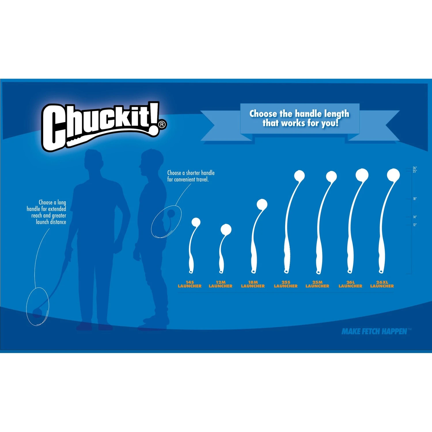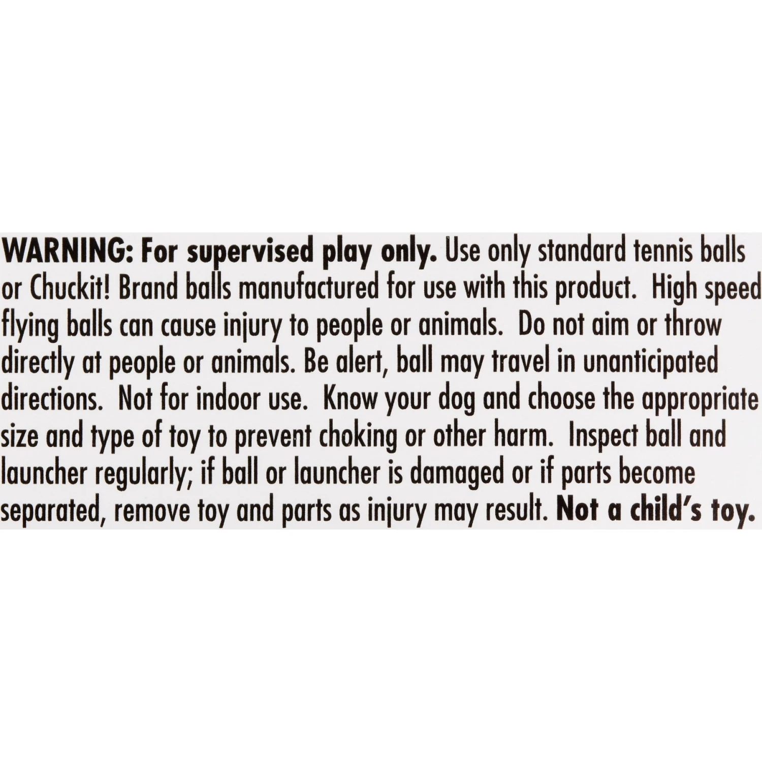 Every dog plays differently and, since not all toys are created equal, it’s always best to keep a close watch on your pup in case things get ruff. Supervised play will help toys last longer and most importantly keep your pal safe. No dog toy is truly indestructible, so always remove the toy from playtime if pieces begin to break off. Use only standard tennis balls or Chuckit! Brand balls manufactured for use with this product. High speed flying balls can cause injury to animals and people. Do not aim or throw directly at people or animals. Be alert, the ball may travel in unanticipated directions. Not for indoor use.