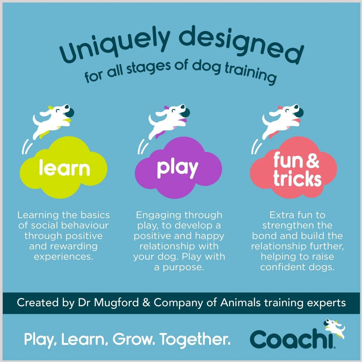 With the Coachi Toilet Dog Training Bells, your pup can let you know when it’s time to go! These bells offer a clear and consistent way for your puppy or dog to communicate. Start by rewarding your dog each time they touch the bells, then progress to letting them out for playtime or a potty break as needed. The adjustable design is paw-fect for dogs of all sizes. Simply hang them from a door or hook at your dog’s head height. In no time, your smart pup will catch on, preventing indoor accidents and nuisance scratching at walls or doors. The Coachi range is designed to focus on effective, humane and positive training methods, making training simple and rewarding for both owners and their dogs.