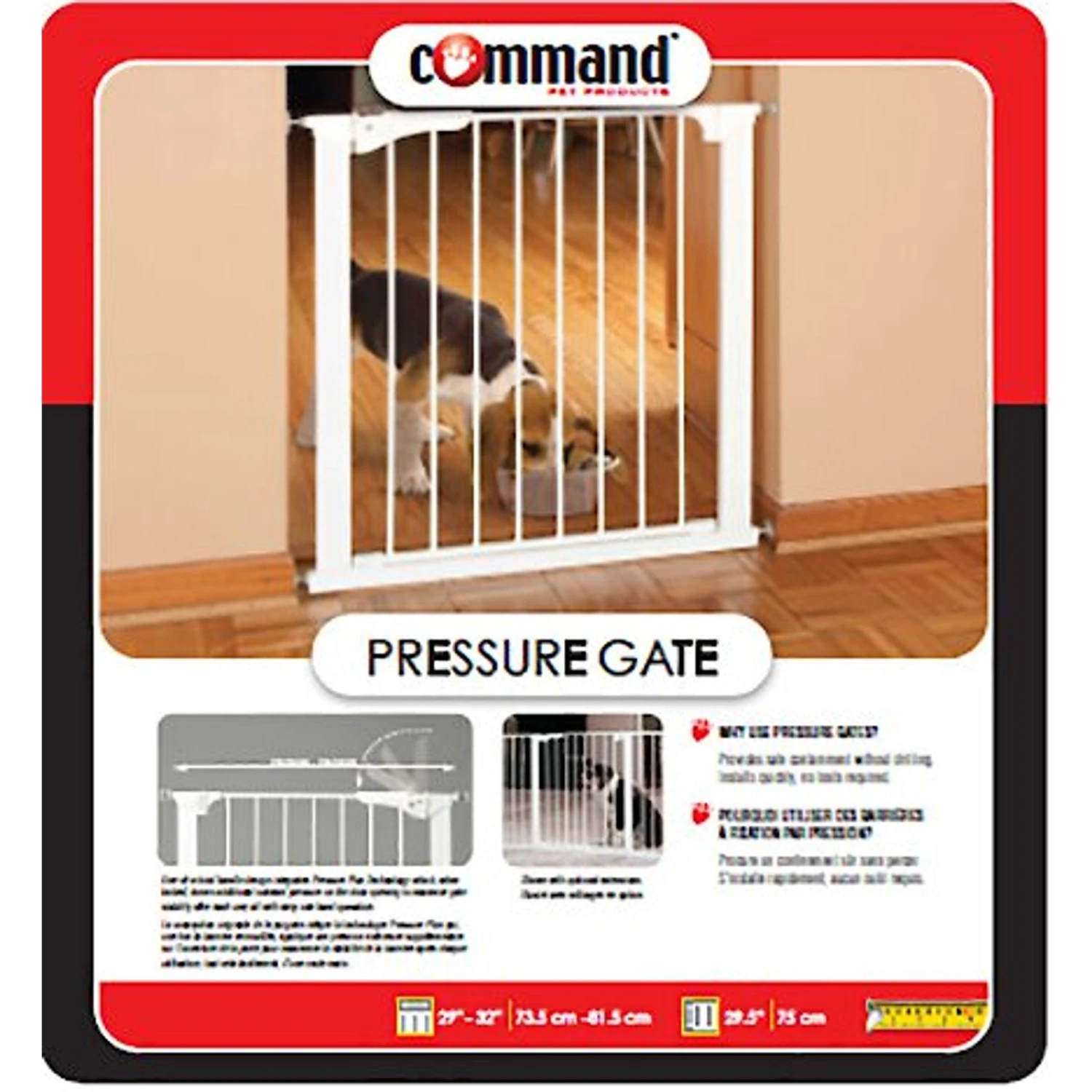 Keep your pet in his very own paw-sonal space with this Command Pet Products pet gate. This mounted-pressure gate is a cinch to set up with no drilling required—simply install it in doorways and room openings so you can keep your pet exactly where you want him. Unlike other pressure-mounted gates, this one easily swings open and closed like a door, so you can easily get from one room to the next—no gate jumping necessary! Simply push the release button and lift the handle. Made in the USA with precision and quality, it gives you the freedom to go about your normal routine, while your pet stays content and safely contained.