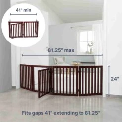 Unipaws 6 Panel Freestanding Wooden Wire Dog & Cat Gate, Walnut, Large