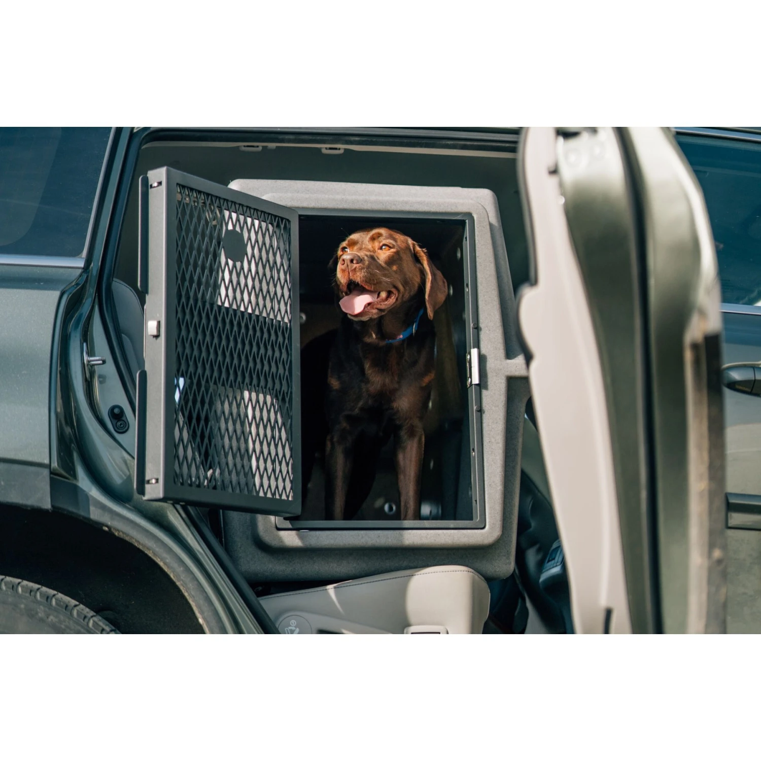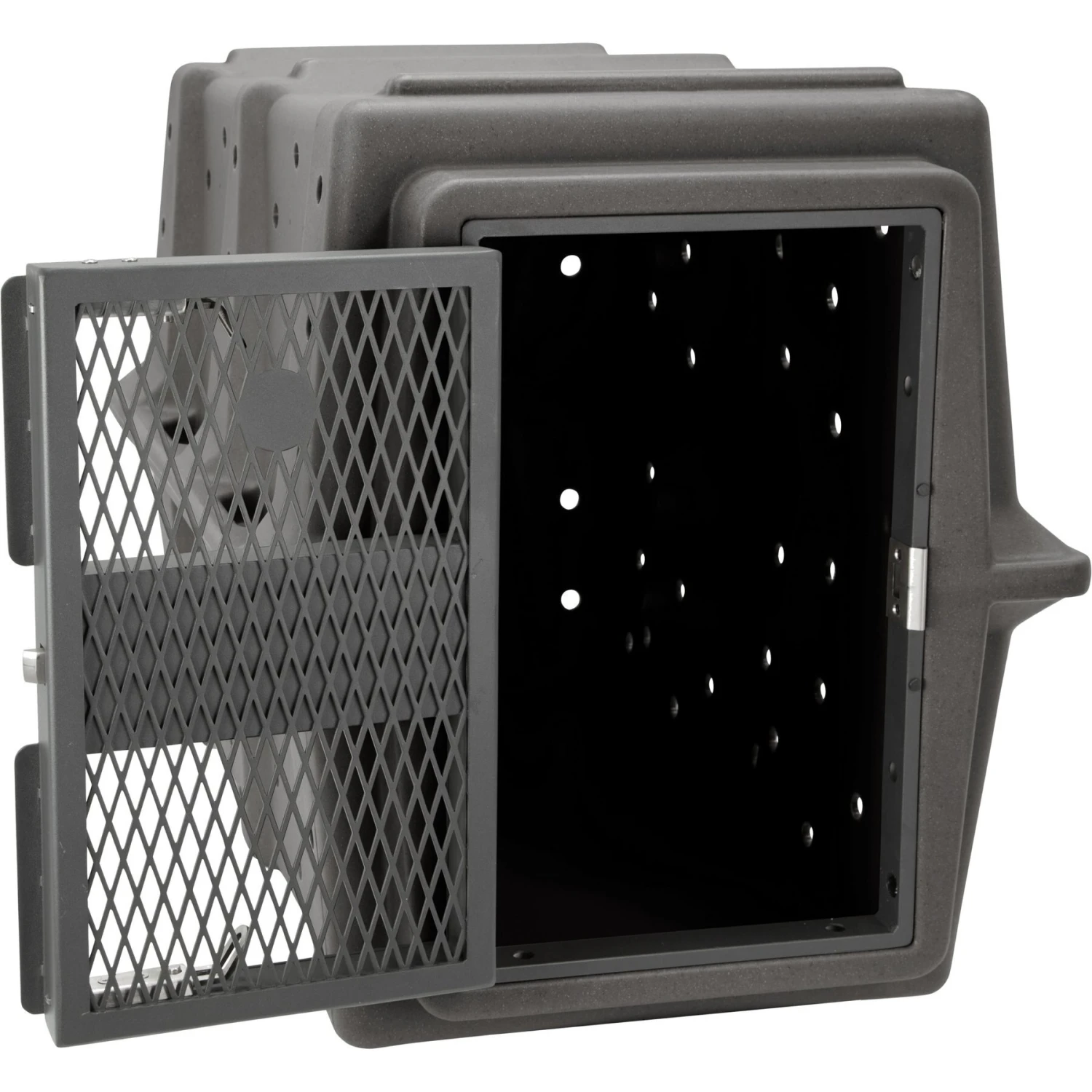 - This durable dog crate features a heavy-duty, military-grade design.