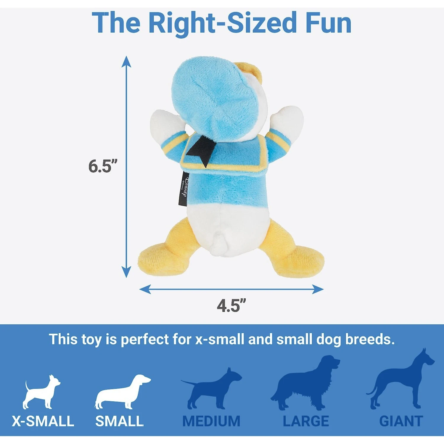 There’s no phooey here with this duck! This Donald Duck plush, available only at Chewy, is designed for a dog’s all-around enjoyment, like only a traditional plush toy can be. He has a soft, cuddleable cover that’s easy on a dog’s mouth and great for snuggles too. Inside, there’s lots of plush stuffing and three squeakers to get their attention when it’s time for a rowdy game of catch or fetch. From snuggling and cuddling to animated interactive games, Donald is sure to bring the classic Disney fun to their toy collection.