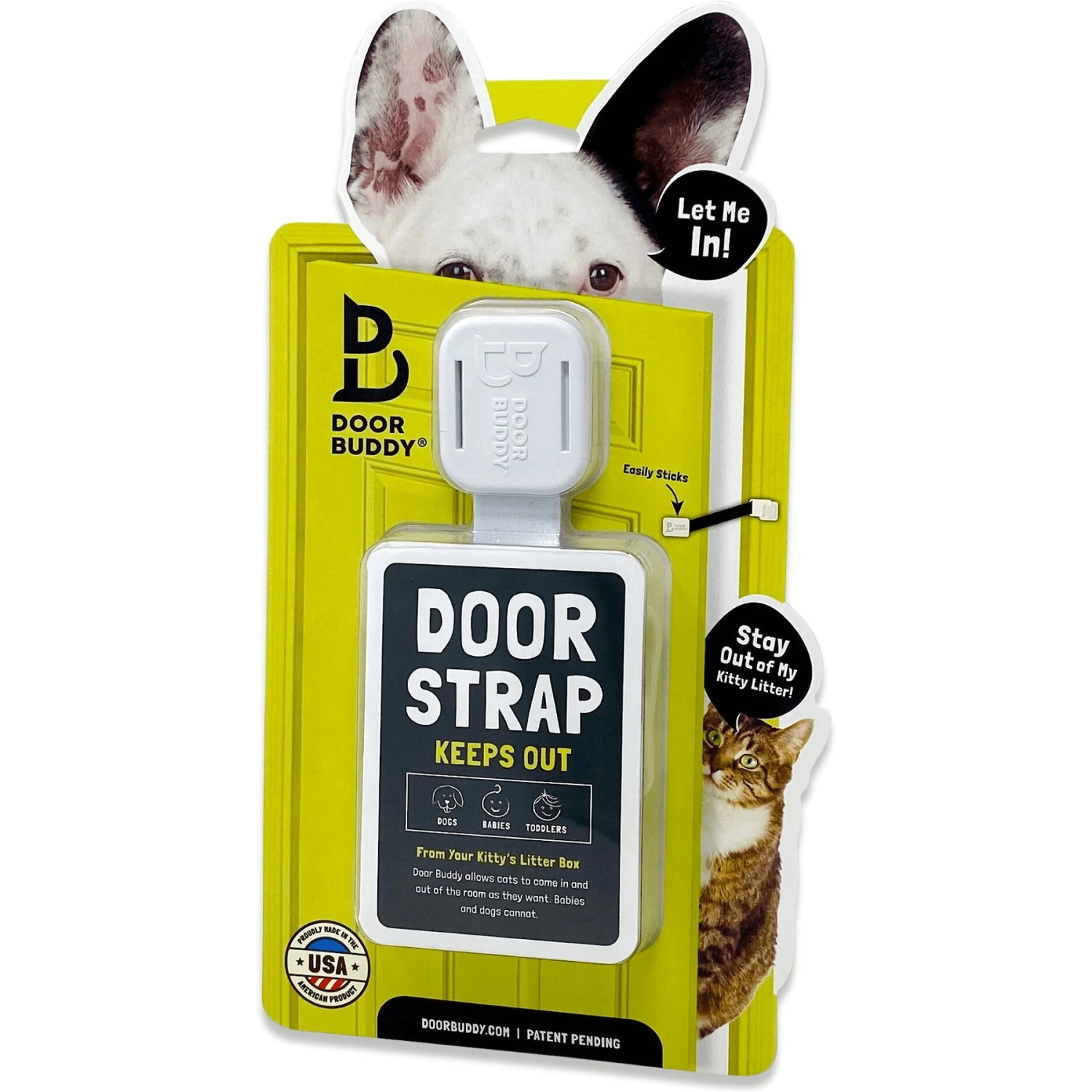 Keep dogs and babies out of the cat’s liter box and food room with the Door Buddy Door Latch. Opening just wide enough to allow your cat to easily come and go, this innovative latch keeps dogs and babies from helping themselves to “kitty litter snacks” or getting into the cat’s food. It’s a great alternative to cumbersome gates that prevent the cat from accessing the room as well, and it installs in just seconds with a strong adhesive tape. Because sometimes keeping peace and order in a home full of kids, dogs and cats is tough, this handy little design gives cats their much-preferred privacy and you peace of mind. It’s simple and it works!
