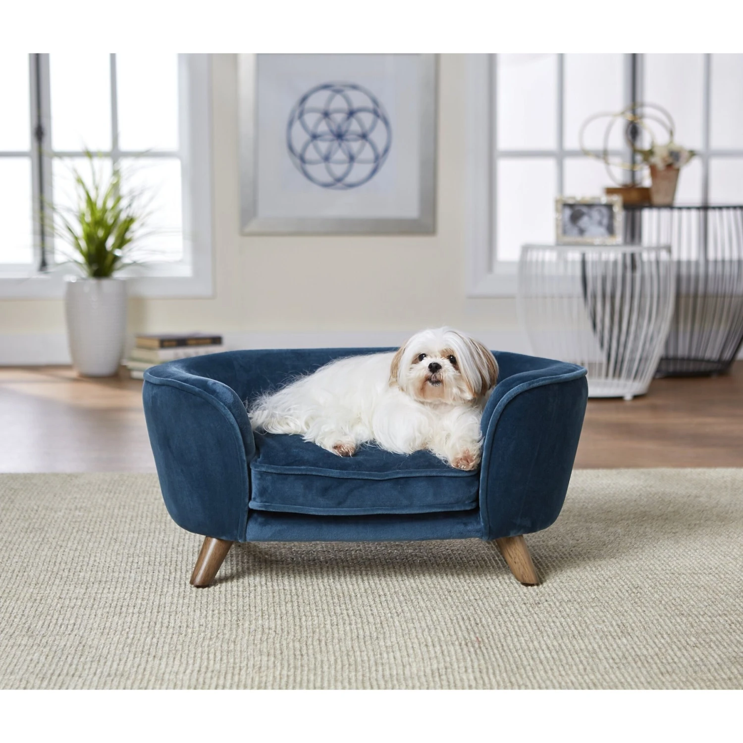 Surround your little pet in a cocoon of cushiony comfort with the Enchanted Home Pet Coco Sofa Pet Bed. This stylish bed features lovely curves, piped edges and elevated legs, for a modern look that complements any décor. The lofty cushion and padded high sides make it ever so comfy, while vibration-absorbing feet and sturdy construction ensure nothing disturbs your best friend’s slumber. Ideal for pups and kitties up to 10 pounds, it features a handy toy storage pocket and comes in a spectrum of chic colors!
