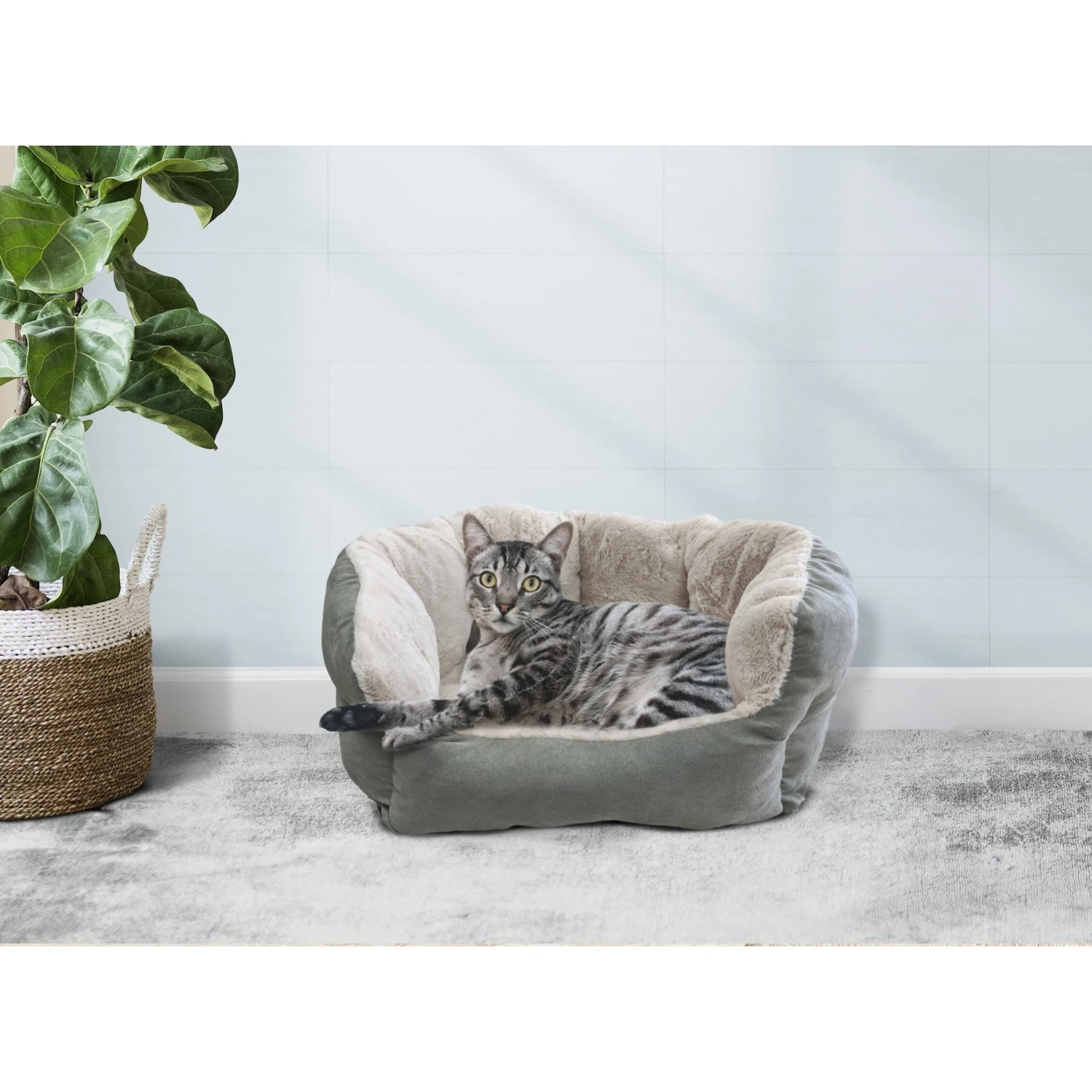 Cuddle your fur-ball in all-season comfort with the Ethical Pet Sleep Zone Reversible Cushion Cuddler Dog & Cat Bed. This soft and cushiony bed features high bolstered sides with a step-in front for easy access. It’s made of furry plush and soft faux suede, with a two-sided cushion that you can reverse depending on the temperature. Pets love the furry side when it’s chilly, while the faux suede keeps them a bit cooler during warm times. 18-inch bed comes in three colors and works wonderfully for cats and smaller dogs. Machine washable for easy care.