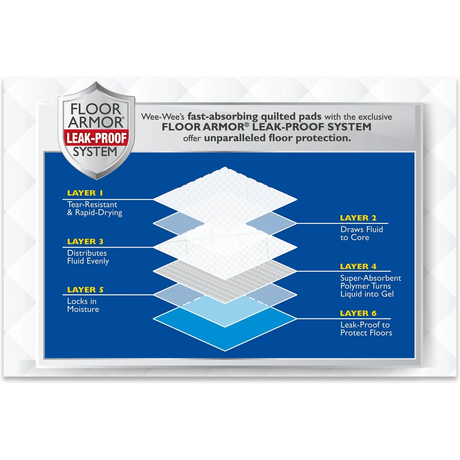 - These pee pads are designed to be 25% more absorbent than Four Paw’s original five-layer Wee-Wee pads (sold separately).