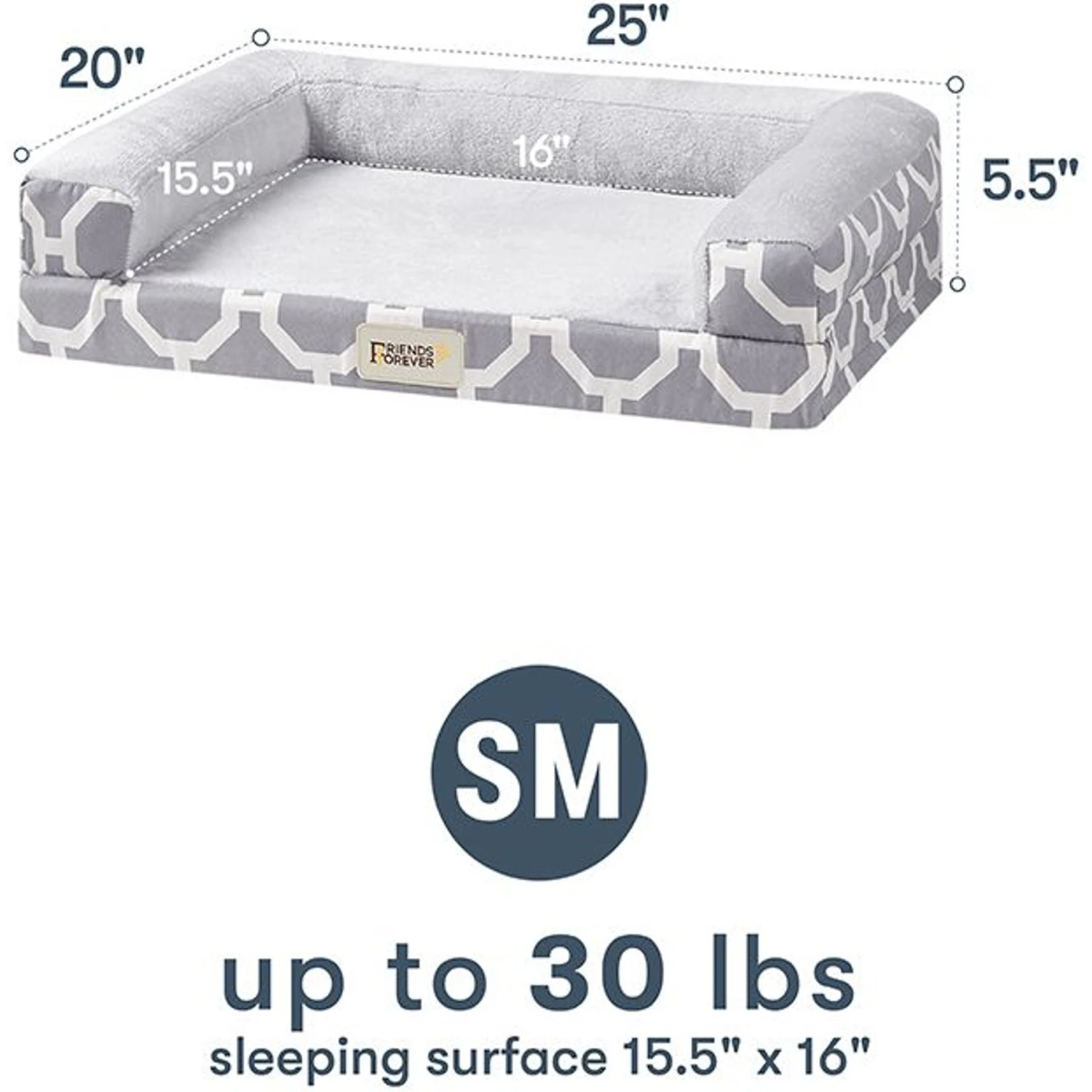 Friends Forever Harper Orthopedic Couch Bolster Sofa With Removable Cover Cat & Dog Bed, Grey