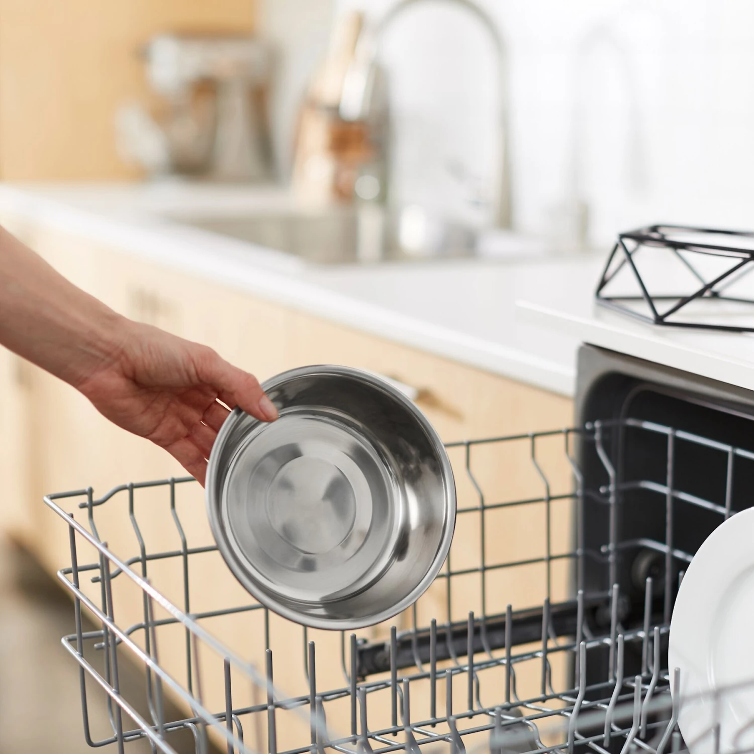 Elevate your dog’s dinnerware with this stainless-steel bowl and metal stand pair. The metal stand features a modern-looking, geometric design that’s sure to look great in your home and securely holds the stainless-steel bowl in place. When it’s time for a cleaning or a refill, the bowl comes out easily. With its elegant design, this feeding station for your pup makes a welcome addition to your home décor.