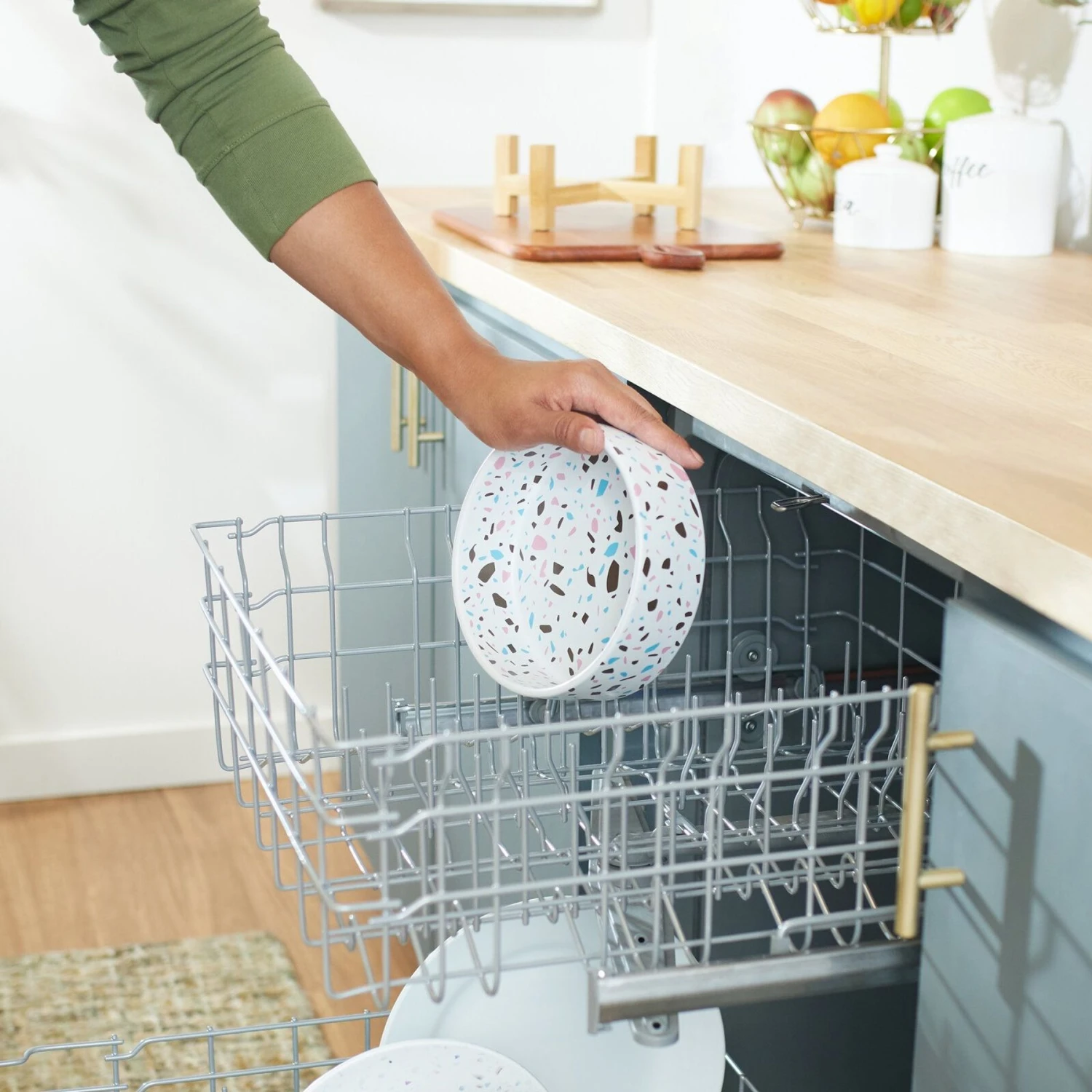 Frisco Elevated Terrazzo Non-skid Ceramic Bowl With Bamboo Stand
