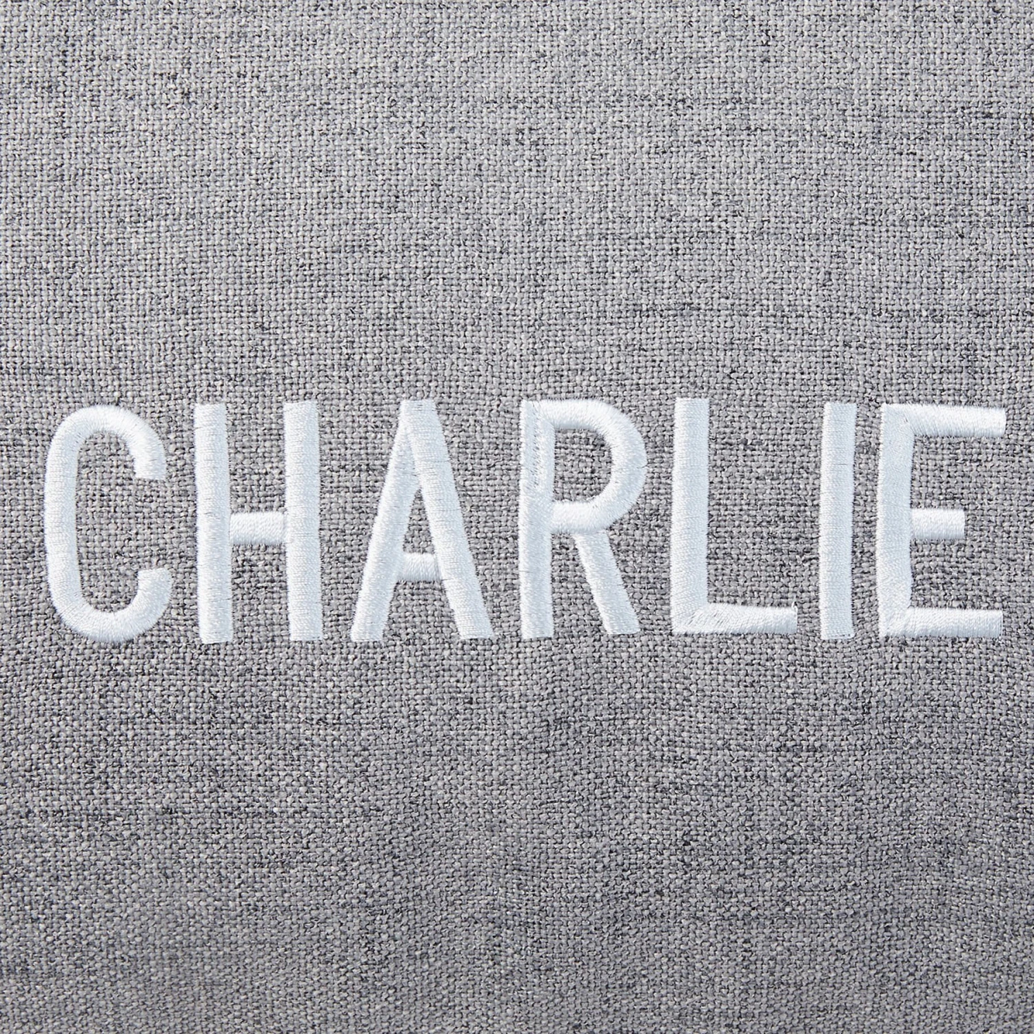 Customize a nap spot just for your dog with the Frisco Personalized Knife Edge Bed! This special sleep spot is personalizable with up to 10 embroidered characters in your choice of white or light gray thread, and flair script or block caps font. This bed literally has their name on it! It’s got a soft, microfiber cover in a dark gray with lots of lofted polyfill inside, so it’s perfectly comfortable for your bestie and it looks great in your home. Plus, there’s no need to worry if it gets a little dirty—just unzip the YKK zipper and give the machine washable cover a spin to keep it clean, comfortable and inviting, nap after nap.