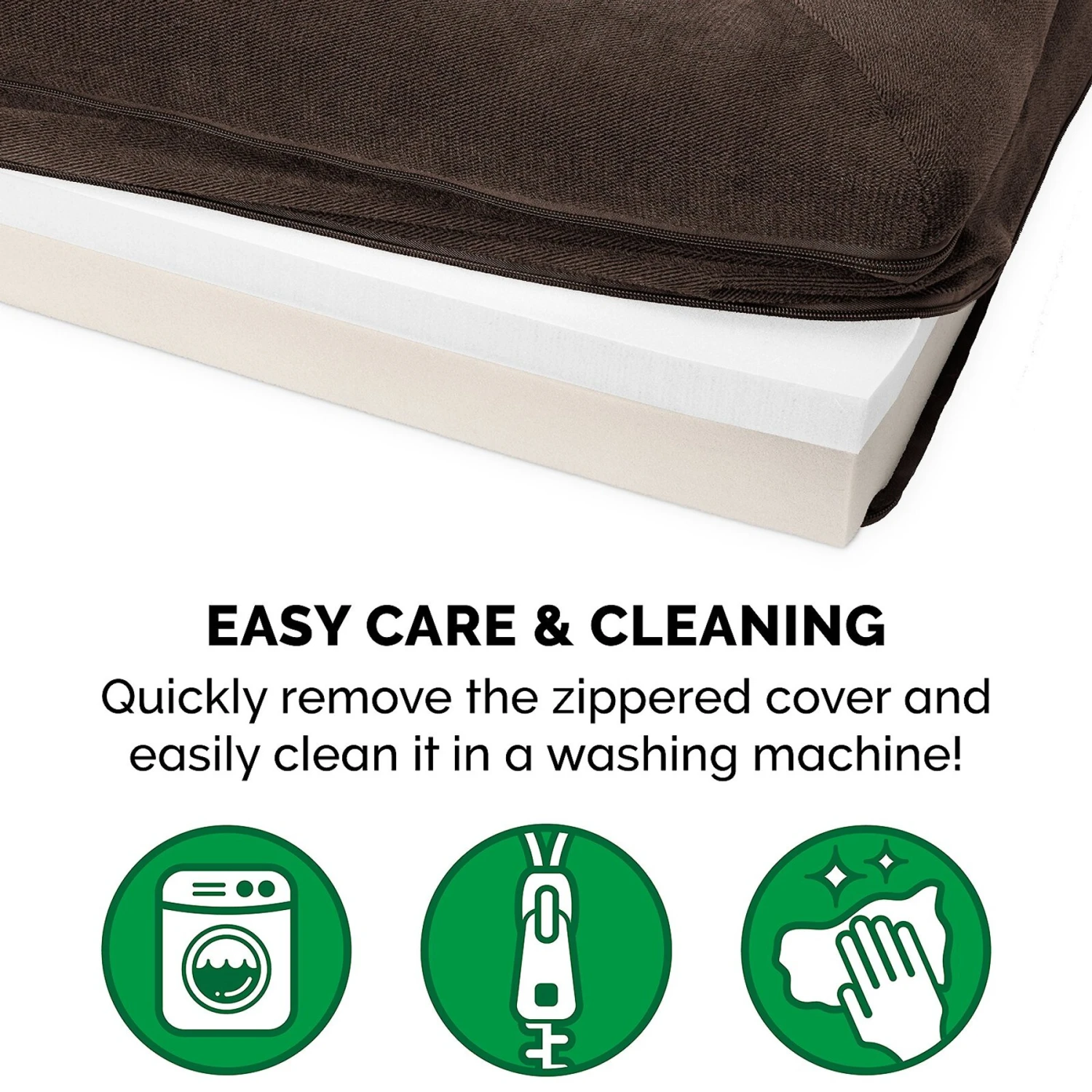 - Removable zippered cover is 100% machine-washable, making it quick and easy to give pet bedding a deep cleaning.