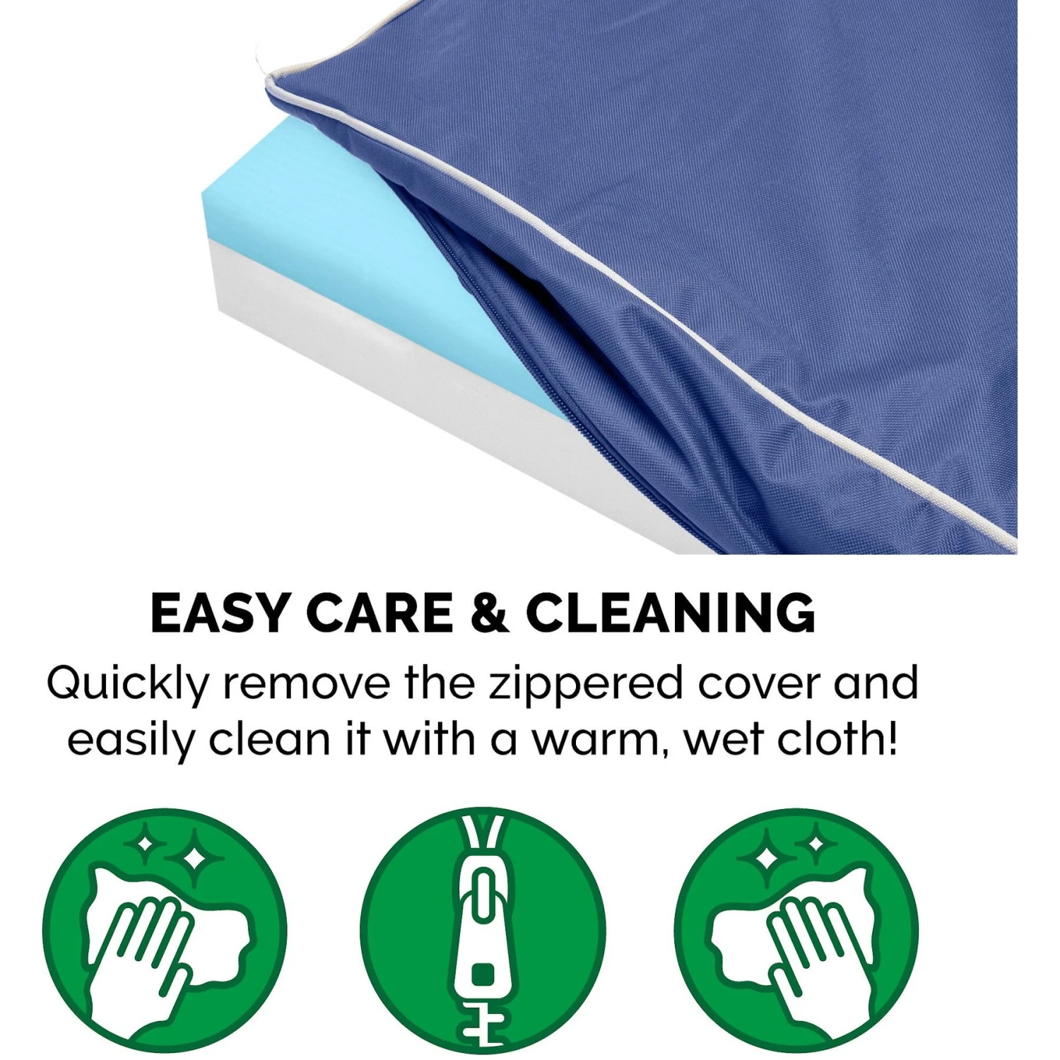 Help your furry friend beat the heat with the FurHaven Indoor/Outdoor Deluxe Solid Cooling Gel Top Orthopedic Mattress Pet Bed. It features micro gel beads to keep the bed cooler and a gel foam core that includes a layered orthopedic foam core topped with gel-infused memory foam. The memory foam works with the weight of your paw-tner to contour to her body for better overall support and relief from muscle pain and joint discomfort. This bed also has a water-resistant base to protect the filling from weather and moisture. With plenty of colors to match your any décor and a portable design, FurHaven Indoor/Outdoor Deluxe Solid Cooling Gel Top Orthopedic Mattress Pet Bed is a welcomed addition to any home with furry little ones.