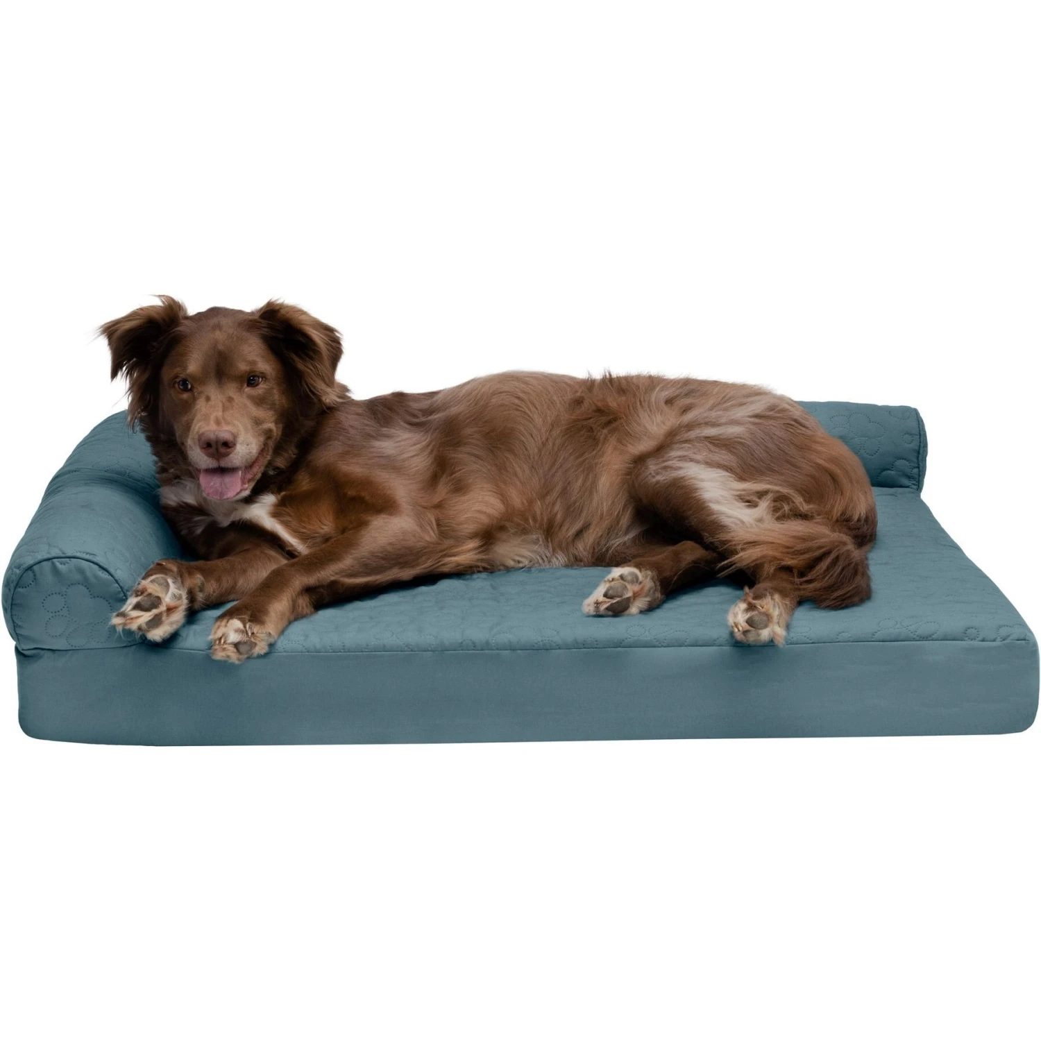 Give your pet the comfort and support he deserves with the Furhaven Paw-Quilted Memory Top Deluxe Chaise Orthopedic Cat & Dog Bed. It features a smooth sleep surface perfect for catnaps to nighttime snuggles, and the stylish quilted design will look great in any room. Your pet will stay cozy and comfortable thanks to the L-shaped bolsters that support his back and hips, while the two rounded ends provide a pillow-like edge to lay his paws or neck on. The memory foam core is designed to contour to your pet’s body, providing better overall support and relief from painful muscles and joint discomfort. Plus, the low-profile, step-on design makes it easy for older or disabled pets to access.