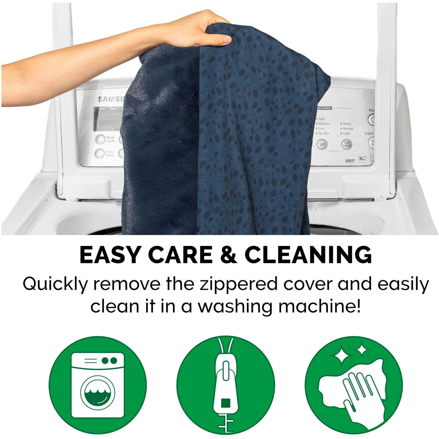 -Cover care: Remove from core before washing (see seam label for fabric care instructions).