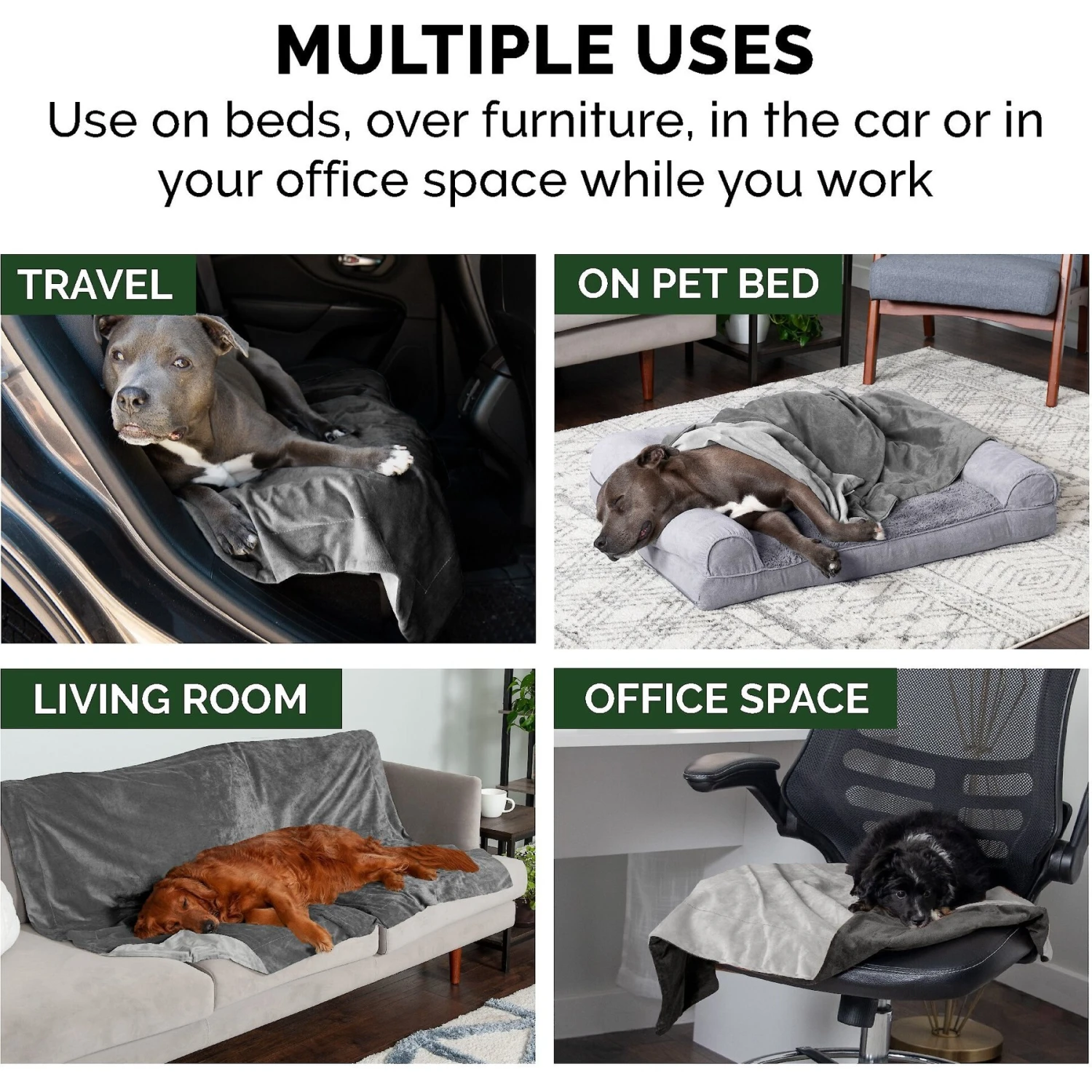 After a day of fetch and fun, your furry friend will sleep soundly with a cozy FurHaven Waterproof Velvet Dog & Cat Throw Blanket. Made from super-soft, velvety fabric, this water-repellant blanket is paw-fect to use on the couch, in the car, or on your fur-iend’s favorite bed. A special coating on the fabric helps protect your furniture and bedding from pet messes, dirt and liquids. Freshening it up easy—simply toss the blanket in the washing machine on the delicate cycle and hang to dry.