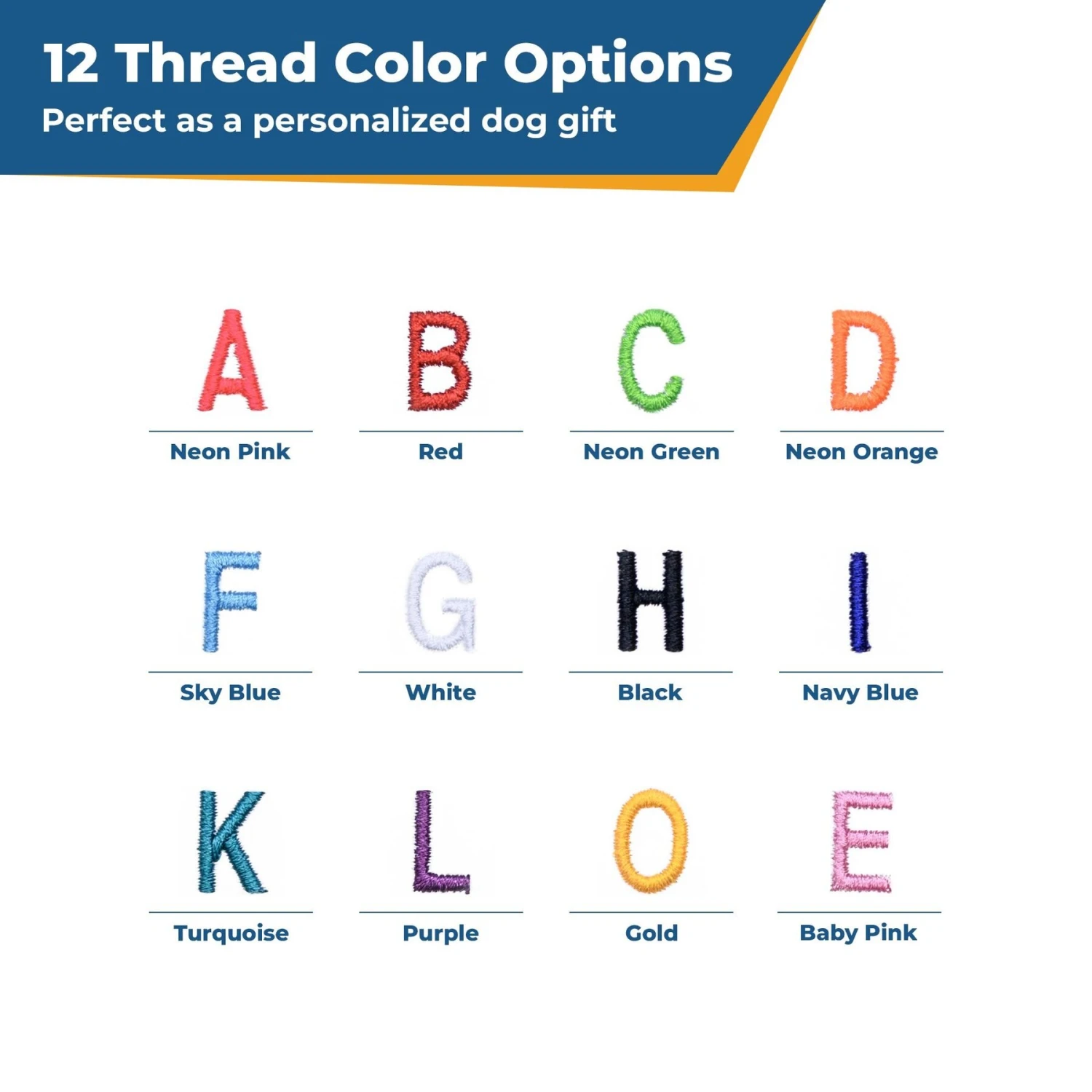 - Choose from 12 thread colors for the embroidery.