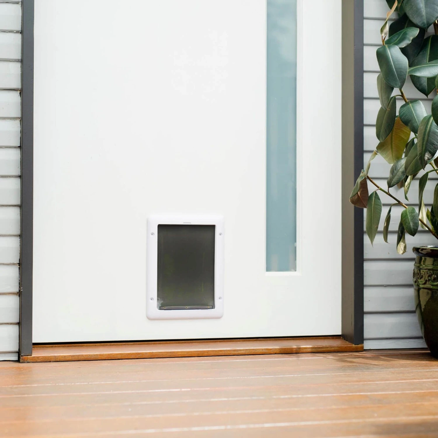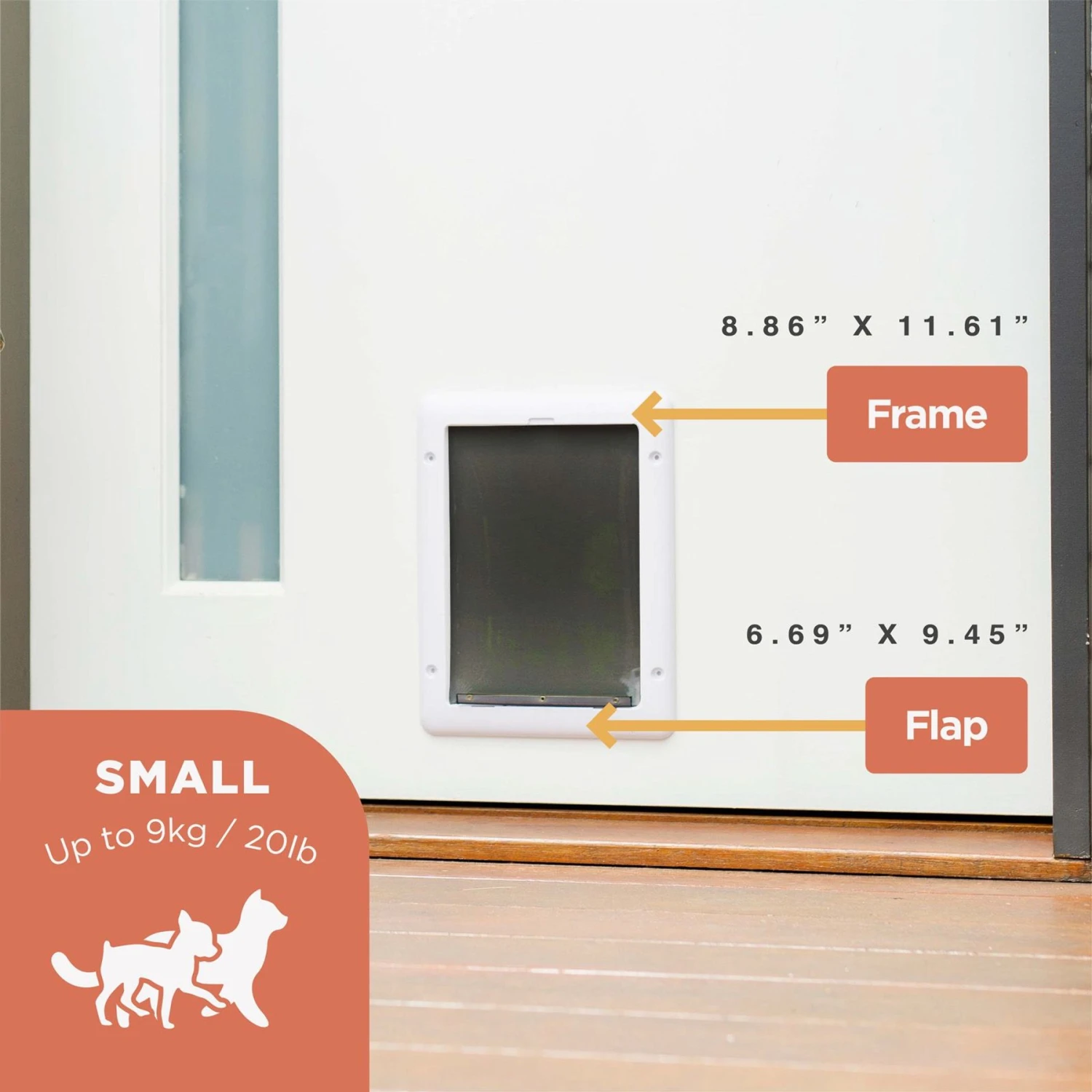 - The draft- and weather-resistant design includes strong magnets to help keep the flap centered after each use.
