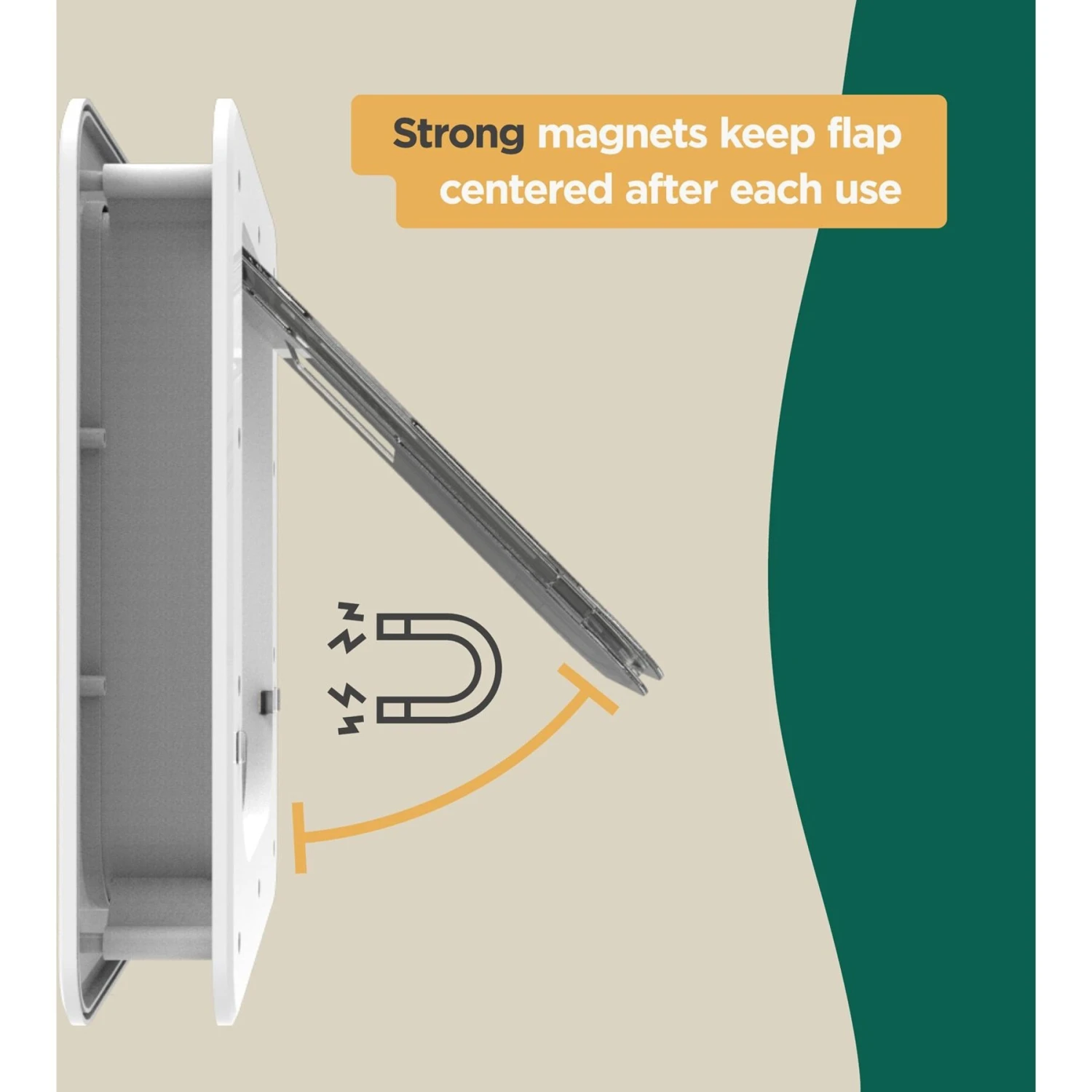 - Fitted with a thick brush seal to help block drafts and strong magnets to keep the flap centered after each use.