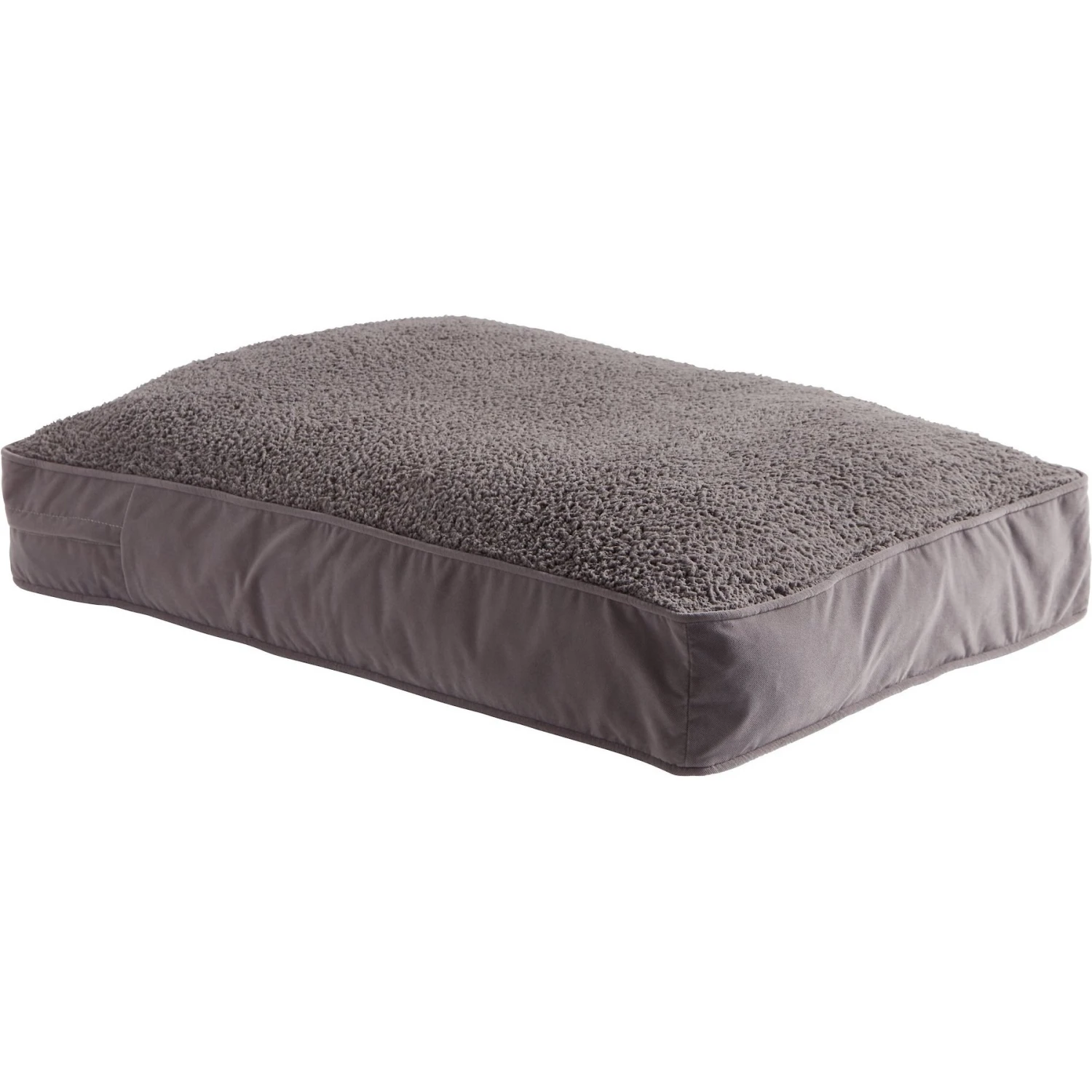 The Happy Hounds Bailey Rectangle Pillow Dog Bed with Removable Cover is sure to be your furry sidekick’s new go-to snooze spot. This rectangular pillow bed is as cozy as it is durable, with double-sewn boxed edges and a sturdy, hidden zipper. Made from heavy-duty, microfiber fabric, the cover features a reversible design and a cord trim for contrast. It’s also water and stain-resistant, so it stays looking new longer. When it’s time to freshen things up, the cover is removable and machine-washable. What’s more, this snuggly nest is filled with 100% post-consumer, recycled, poly-fiber fill.