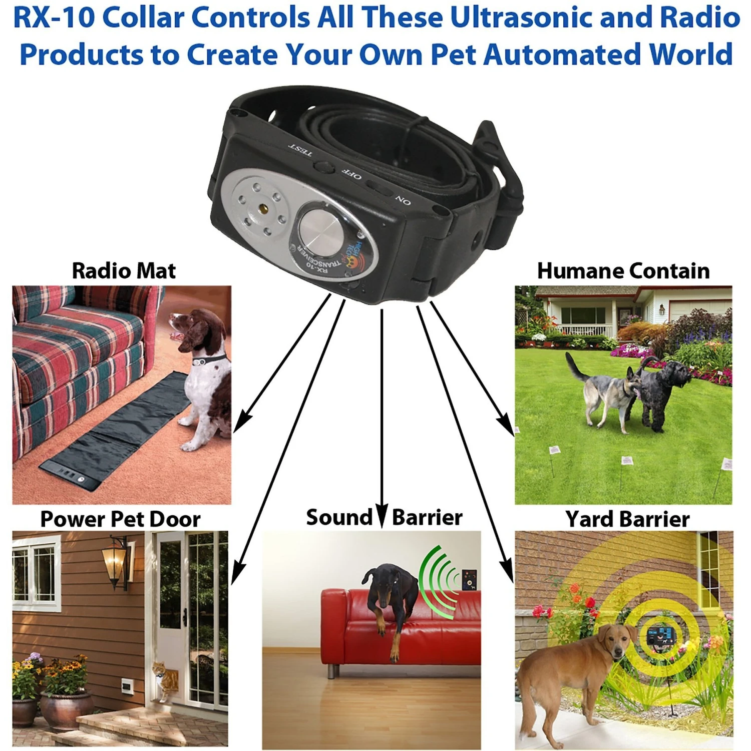 - Kit includes TX-1 transmitter, RX-10 multi-function collar, collar charger, 500 feet of wire, 50 boundary flags, 3 wire splices, an AC adapter for the transmitter and an AC adapter for the charger.