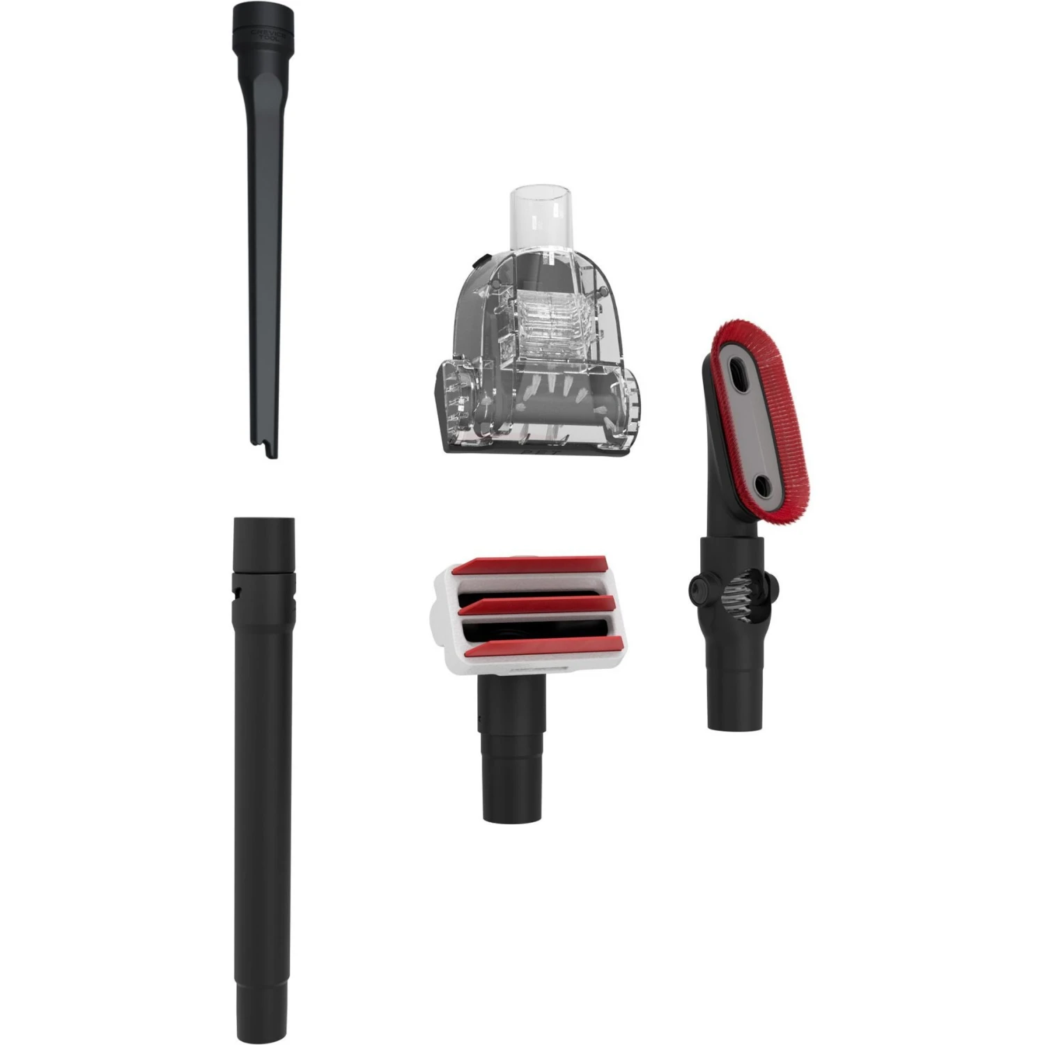 2-in-1 Upholstery Tool, Crevice Tool, Pivoting dust brush, Teloscopic extention wand.
