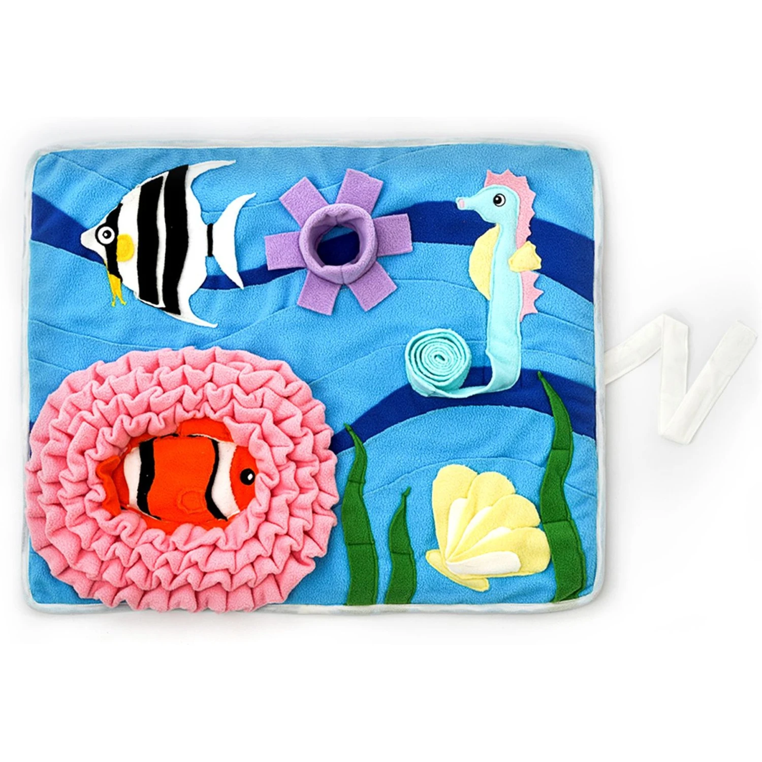 Keep your paw-some pal entertained with the Injoya Under The Sea Cat & Dog Snuffle Mat! This handy mat features foraging sections to hide training treats, snacks, and kibble. It’s specifically designed to help promote slow feeding and encourage mental enrichment by alleviating stress and fending off boredom. It’s made from durable, non-toxic polyester fabric, and it features an anti-slip bottom surface to help keep it in place. This mat will help your best fur-iend exercise his jaws and his mind, all while keeping him pleasantly entertained!