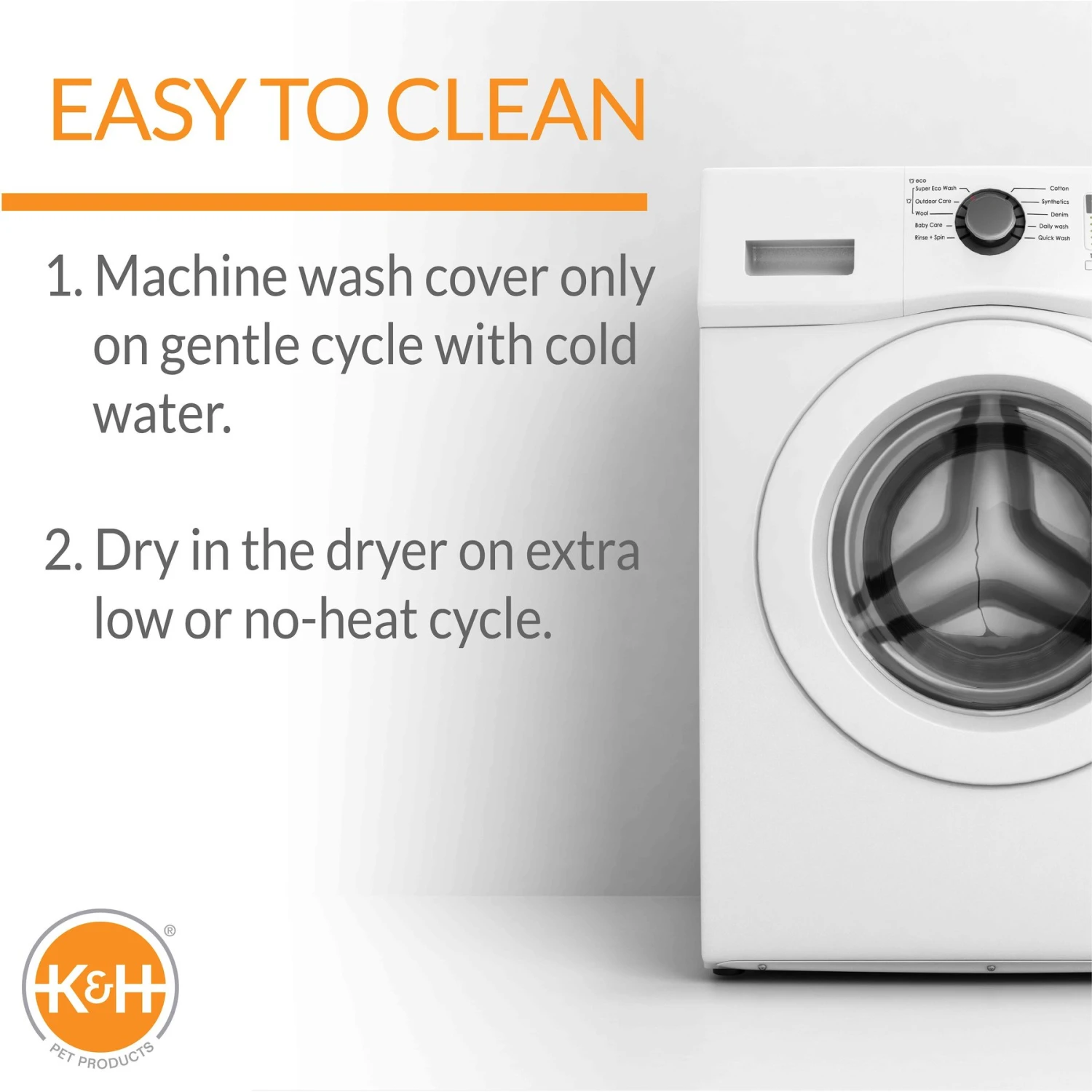 Indoor and outdoor use to elevate your pet and keep them off the ground. Place this pet bed out of path of foot traffic. Not intended for use by children. Pets can chew items unexpectedly. Remove bed immediately if torn or damaged. Seek veterinary attention if any material is ingested.; Remove the cover from the bed. Machine wash cover only, separately. Mild detergents, no bleach. Cold water, gentle cycle. Air or line dry. Dry completely before reassembly.