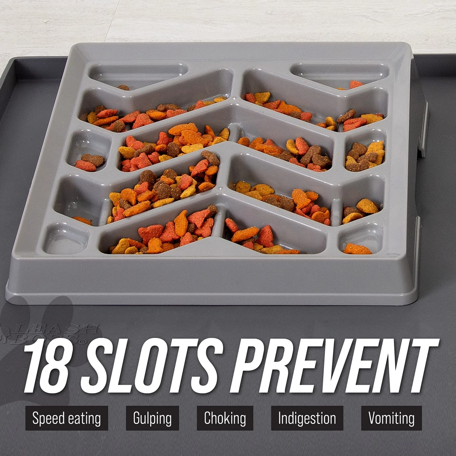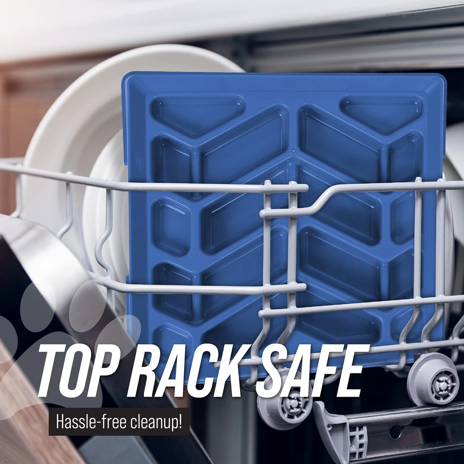With the Leashboss Flat Face Slow Feeder Dog Bowl, mealtimes are longer and a ton more fun! This feeder is designed for flat-faced dogs like French bulldogs and pugs, as well as for cats. Wider channels and shallow dips let your furbaby enjoy the benefits of a slow feed bowl without all the frustration. There are no sharp corners or narrow spaces to scrape snouts, and a gentle incline helps your furbaby reach his food more easily. At the same time, the mat promotes slower eating for improved digestion and happier tummies. It may help prevent gulping, bloat, obesity, choking and vomiting, while the interactive maze design helps keep your furbaby’s interest. Try adding peanut butter for a special treat while you’re out, or use the bowl for your best friend’s dry food, wet food or raw food. The feeder’s non-slip grip helps keep it from sliding around, and it’s dishwasher-safe for su-paw easy cleaning.