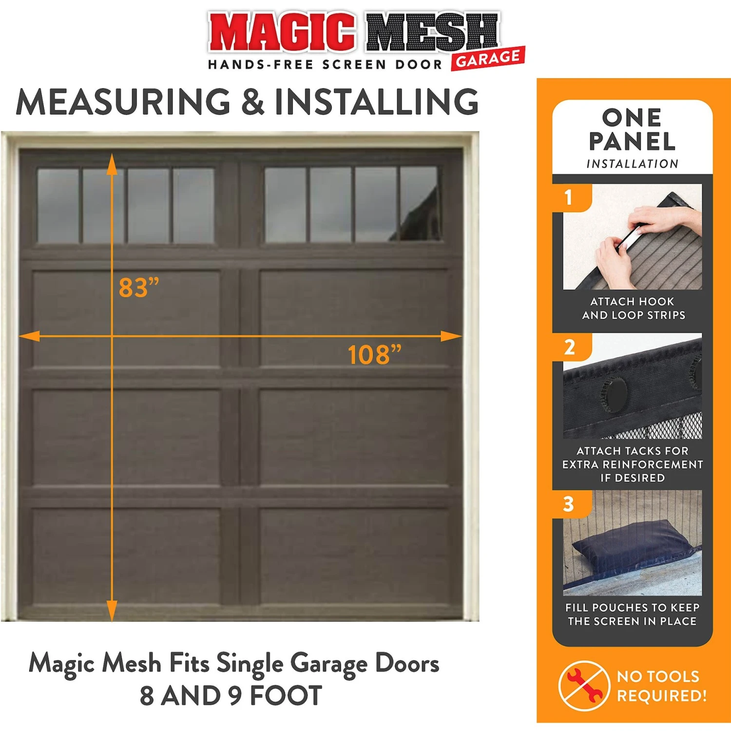 Keep your garage insect-free while letting fresh air and sunlight through with the Magic Mesh Garage Hands-Free Screen Dog & Cat Door! This easy-install screen attaches to a variety of door frames without the need for any tools, and the center panel design closes behind you automatically. Sealed with 18 powerful magnets, this unique screen allows you to walk right through—even if your hands are full. The frameless design attaches easily with hook and loop strips making removal simple, so it’s only up when you need it and can be stored when you don’t. It’s a truly innovative way to enjoy the great outdoors without the annoyance of mosquitos, bees and other bugs. Plus, the hands-free design makes it easy for pups to come and go as they please!