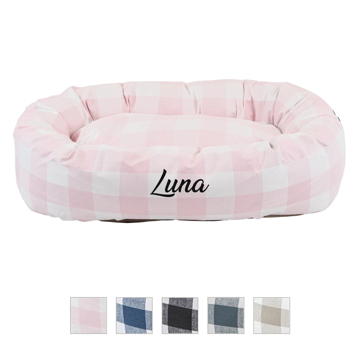 Your best fur-iend will be snoozing in the lap of luxury with the Majestic Pet Personalized Anderson Check Bagel Cat & Dog Bed. Crafted with premium, cozy, polyester fiber fill and heavy-duty, water-resistant 300/600 Denier, this custom cuddly bed is ideal for spontaneous afternoon naps and essential spine support—it will keep his spine straight while he rests his head. Best of all, you can have your pet’s name embroidered on this USA-made bed for a personalized touch!