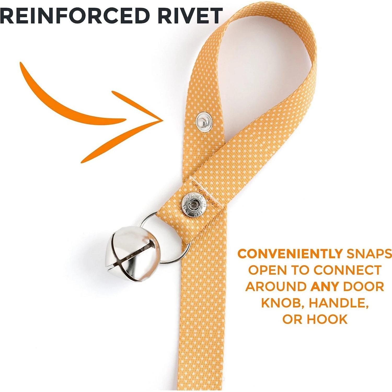 House training is music to your ears with the Mighty Paw Tinkle Bells Dog Doorbell. Allowing your dog to communicate when it’s time to go outside, just hang these bells on the door, and dogs can be easily trained to swat the bells when nature calls. It easily hangs around any doorknob with a loop that snaps into place with a reinforced rivet, and the nylon ribbon is both attractive and durable—standing up to tugs, scratches, and bites. And most importantly, the silver-coated bells make a pleasant, clear sound that can be heard from other rooms.