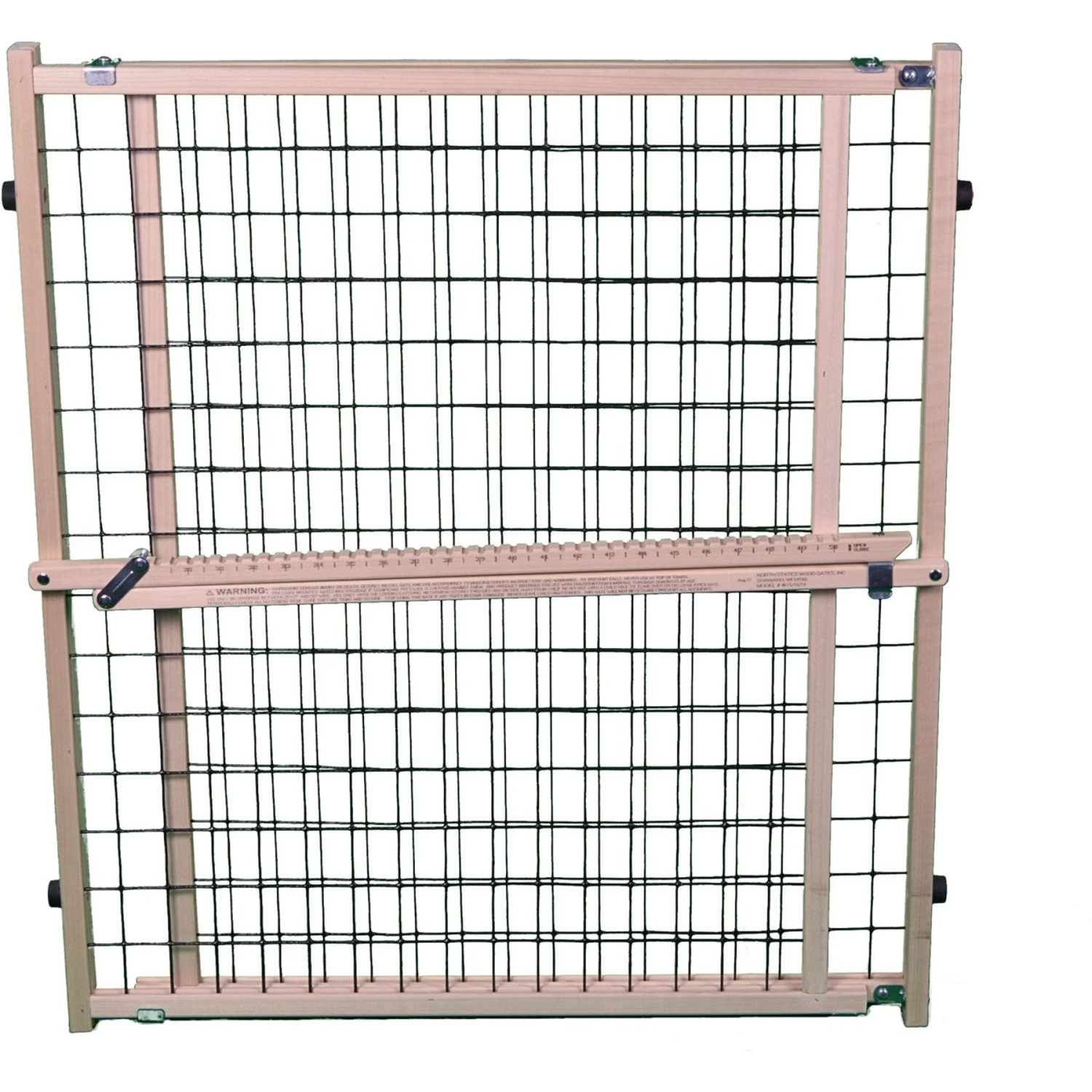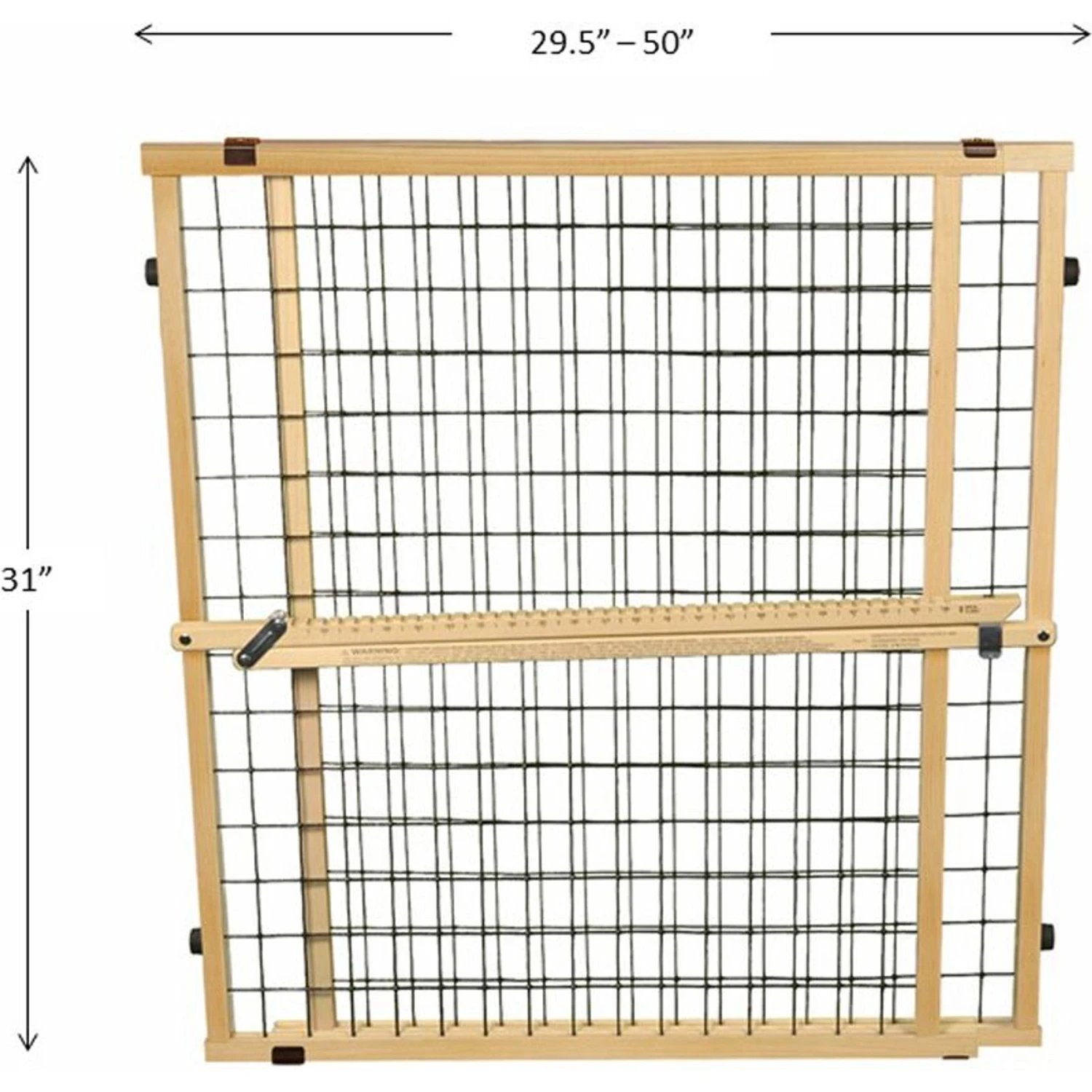 Give your pet his very own paw-sonal space with MyPet’s Extra Wide Wire Mesh Gate! Designed for those extra-wide openings in your home, this wooden gate is ideal to keep your pet safely contained. The gate is 31 inches tall and uses pressure mounts to easily and securely keep it in place—that means no hardware or drilling required! The rigid vinyl-coated brown wire mesh panels easily adjust to fit openings in your home that are between 29.5 to 50 inches wide. And best of all, the frame of the gate is purposely designed with a neutral color to help keep your walls clean and free of marks.