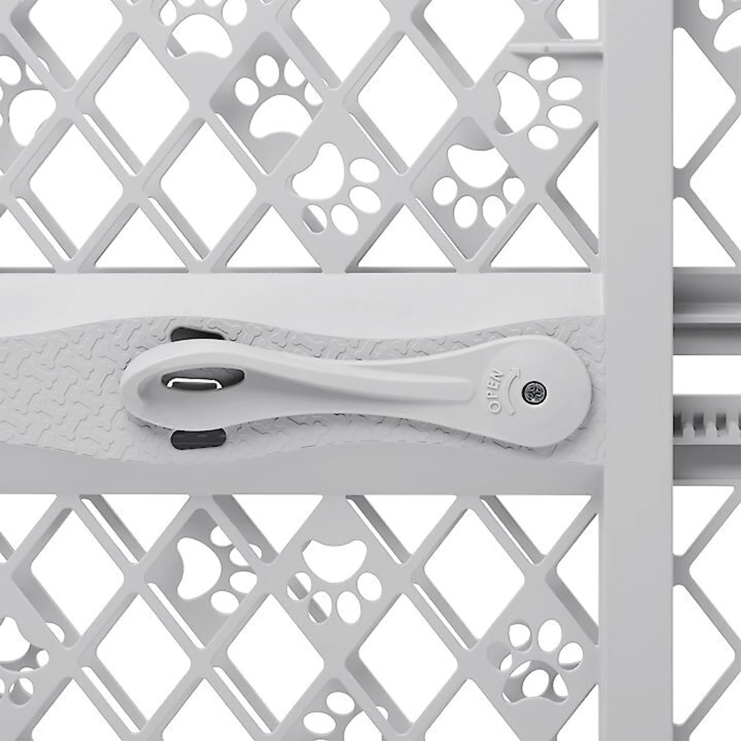 - High-quality, durable plastic room divider comes fully assembled; gate latticework features cute paw prints for a fun, playful design.