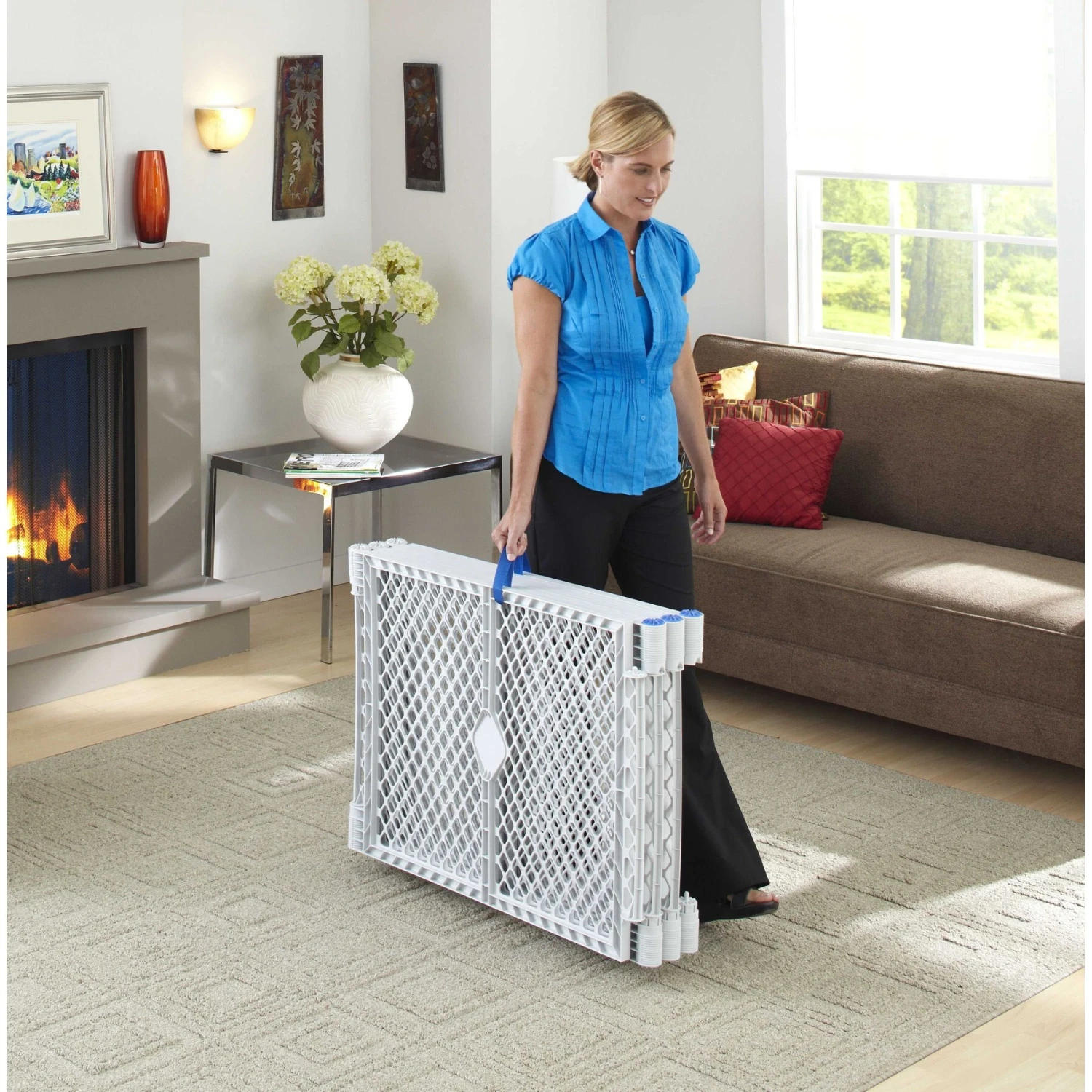 Help keep your paw-fect pooch safe indoors and outdoors with the Plastic Dog Pet Yard from MyPet! This high-quality, six-panel yard encloses up to 18.5 square feet and is 26 inches high. Setting it up is easy. The six interlocking panels are pre-connected—simply pull the panels out of box, unfold and connect them together. It comes complete with skid-resistant pads that work on any surface and won’t slip or scratch. This pey yard includes a convenient carry handle, which makes this lightweight yard easy to take anywhere. Want to increase the area? A Two-Panel Extension is sold separately. Safety and containment all wrapped up in one gate—how simple!