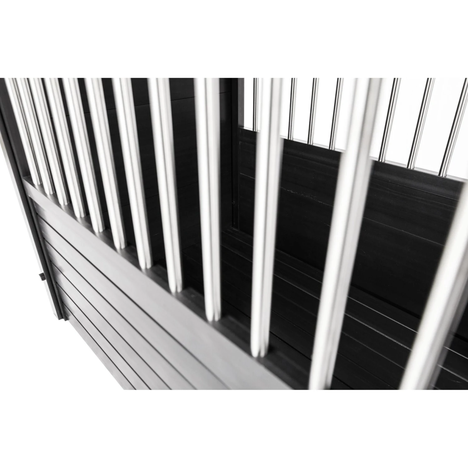 - The spindles are made of stainless-steel tubing and a stainless-steel latch—with double latches on large and x-large crates.