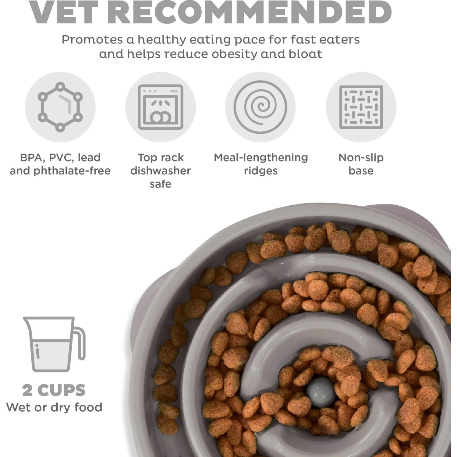 - Supports proper digestion and helps prevent common issues that arise in fast-eating dogs, including overeating, bloat, regurgitation, and canine obesity.