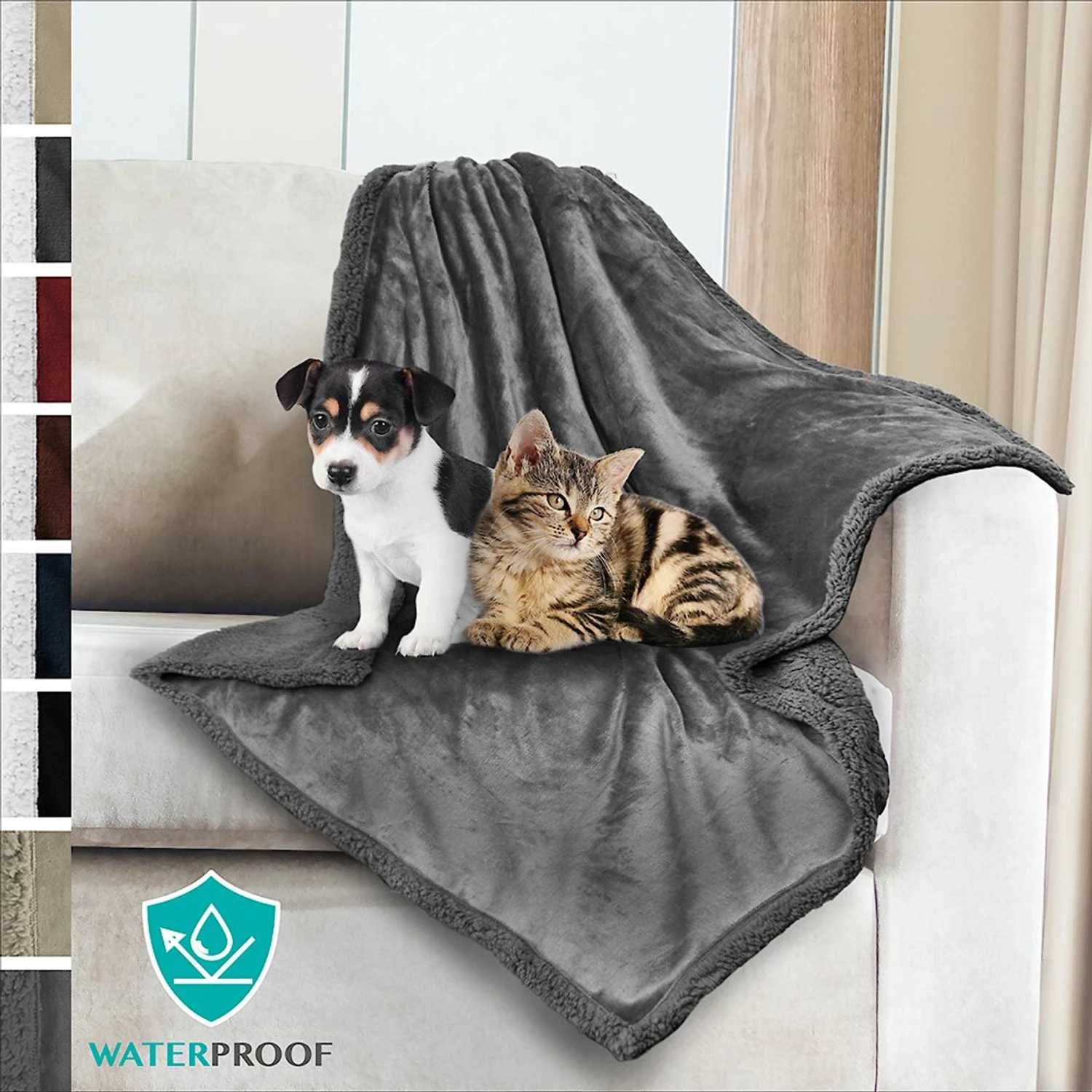 Start protecting your finest furniture from spills, drool, urine and shedding with the Waterproof Dog Blanket from PetAmi! This sherpa-lined throw blanket is a great choice for beds, couches and sofas, helping shield them from various pet-related messes. Constructed with comfortable-yet-durable, 460 GSM premium microfiber polyester—this pet-pleasing blanket can also find a home in dog crates, kennels and pet mats.