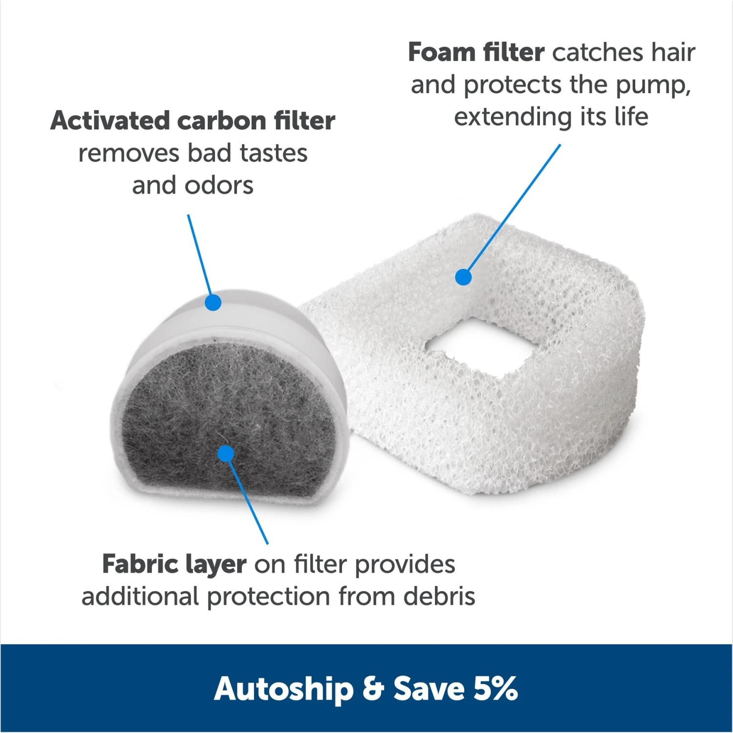 - Comes with a replaceable carbon and foam filter to help remove unpleasant odors, tastes and debris from your pet’s water, encouraging them to keep hydrated.