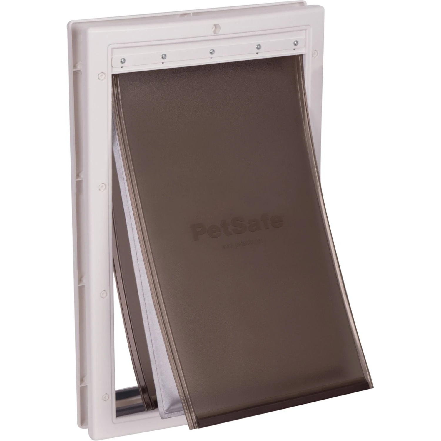 Keep your home feeling comfortable even in extreme temperatures with the PetSafe Extreme Weather NEVER RUST Pet Door. When the temperature skyrockets into triple digits or drops below freezing, it will continue to let your furry friend come in and out while also giving your home maximum energy efficiency. Over three times more efficient than single flap doors, this pet door blocks severe temperatures with three flaps—including a center insulated flap for added protection against the weather. Installation is a do-it-yourself project and you can paint the white frame to match your door’s existing color. Rest easy knowing your pet can come and go, no matter how cold or hot it gets outside.