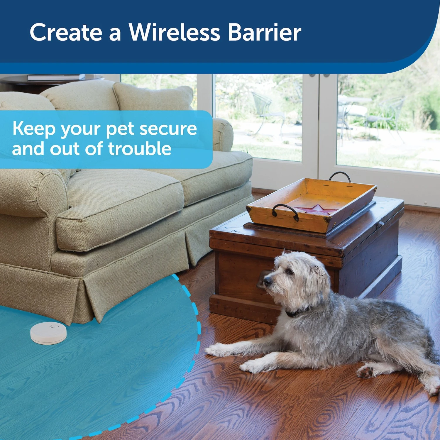 - Wireless pet barrier transmitter lets you set indoor boundaries to keep your pets away from off-limits areas.