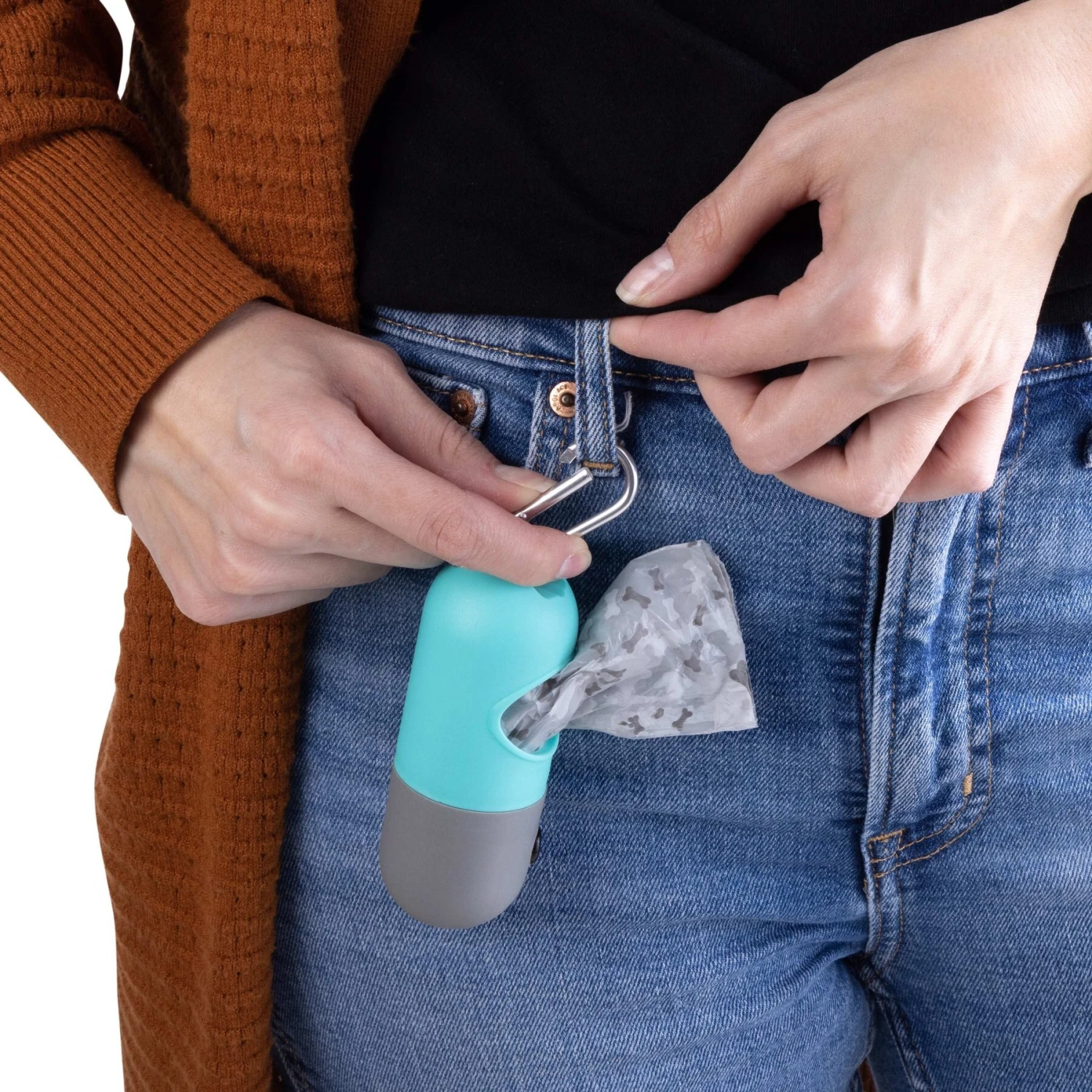 Illuminate your nighttime walks with the Pounce + Fetch Dog Waste Bag Dispenser with Flashlight! This waste bag dispenser is paw-fect for walks, road trips, camping trips and more. Simply clip the dispenser onto a bag, leash or belt loop to always have it handy. The built-in flashlight makes it easy to light your way after dark. The bright LED light can help you clean up after your pup or avoid stepping in a pile of mess!