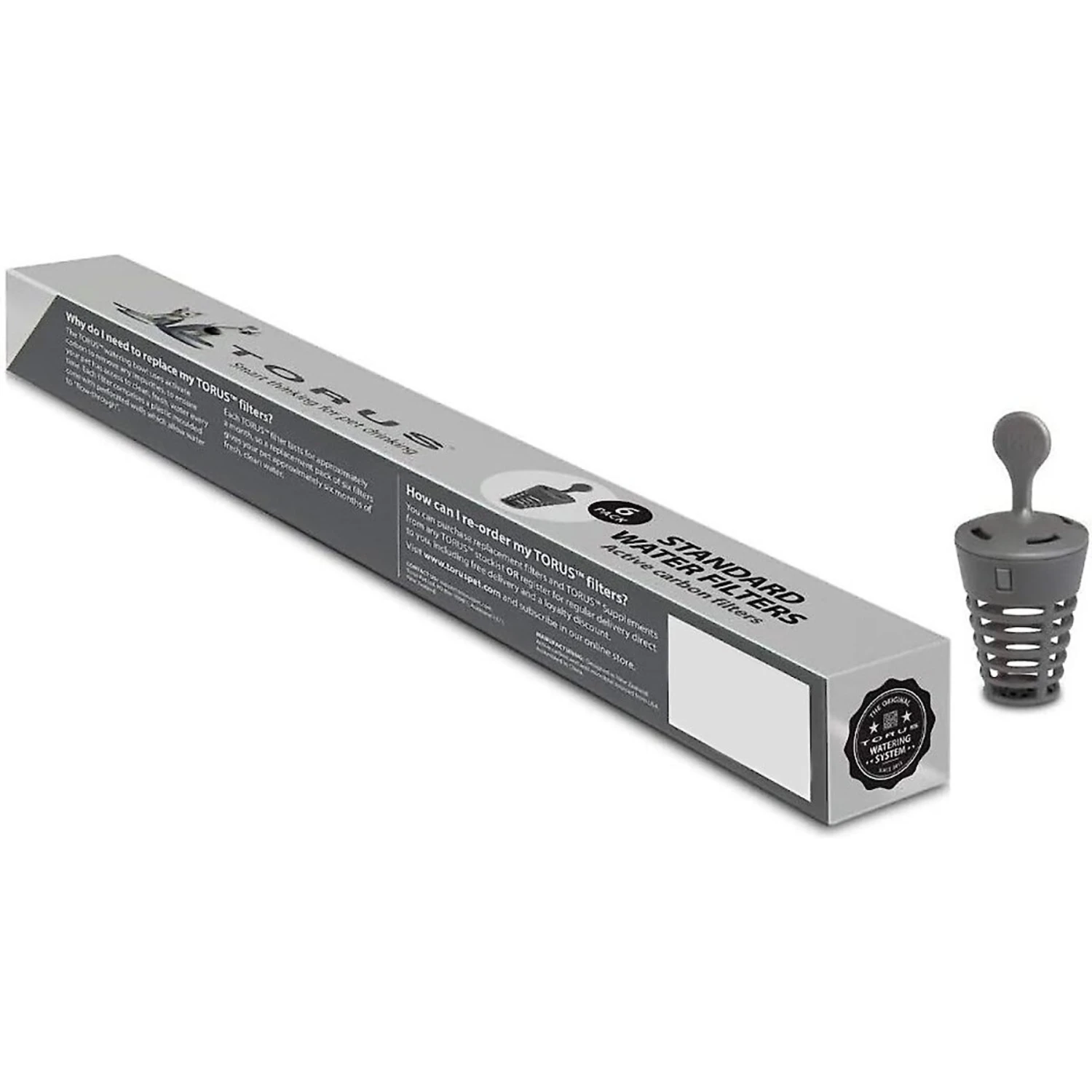 With Torus Filtered Water Bowl Replacement Filters, you’ll have a six-month backup supply of active carbon filters for your Torus Filtered Water Bowl (sold separately). These filters remove impurities to keep your pet’s drinking water clean and fresh. They improve water clarity, reduce odors and remove chloramine, chlorine, phenol, tannins, hydrogen sulfide and other compounds that cause unpleasant odors. Cleaner water is more appealing to your pet and will encourage her to stay hydrated!