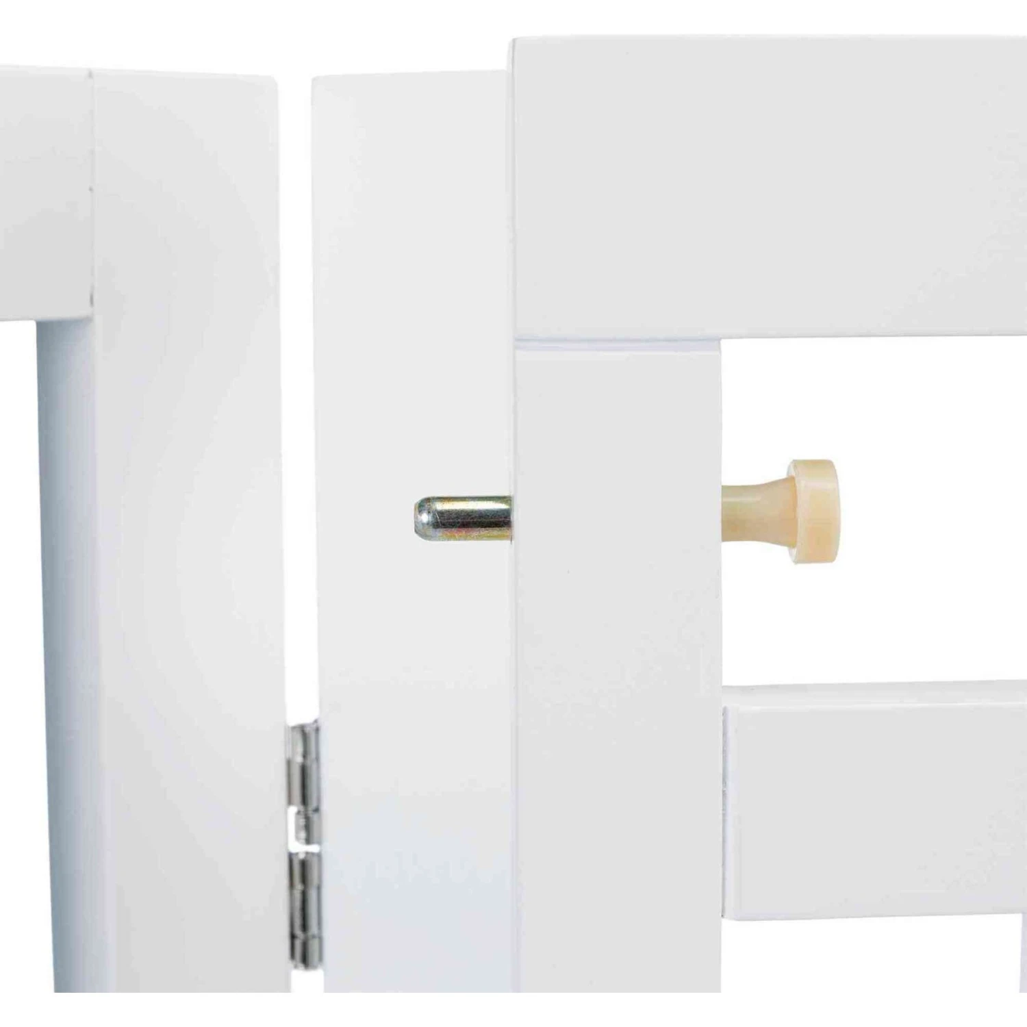 The versatile Trixie Wooden Dog Gate provides for all your canine containment needs. The convertible 4-panel hinged design lets you set it up as a pet gate, room divider or fully enclosed pen, while the convenient walk-through door provides easy access for pets and people. It comes with non-slip rubber feet to keep the gate in place and all the hardware required for assembly. Comes in White and Espresso brown and folds flat for easy storage and portability.