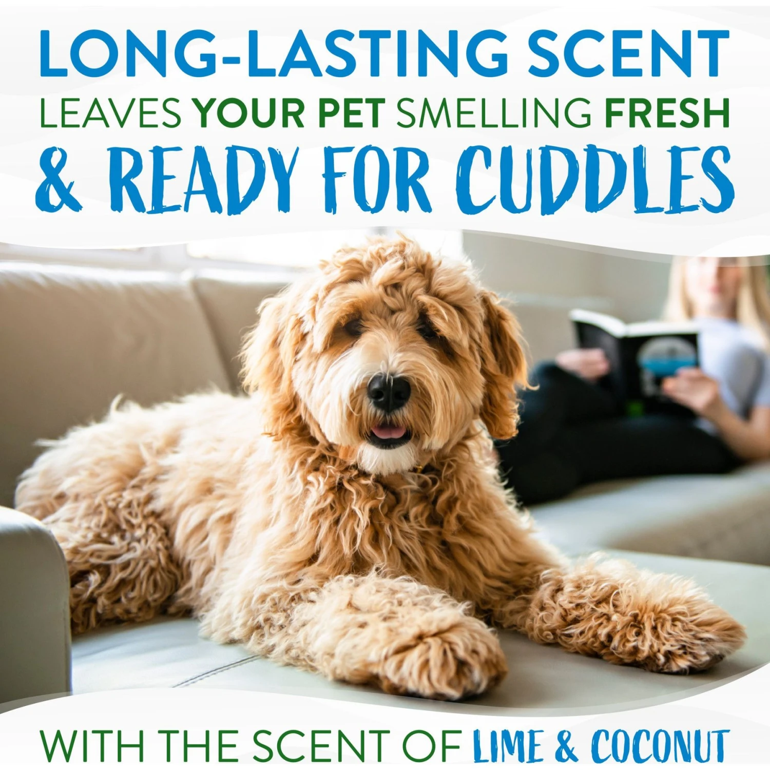 TropiClean Lime & Coconut Deodorizing Dog & Cat Spray, 8-oz bottle—This refreshing TropiClean Lime & Coconut Deodorizing Dog & Cat Spray conditions and soothes your four-legged friend’s skin and coat, while breaking down unpleasant smells at the source. So, not only will it effectively re-fur-esh your canine companion or feline friend, but it will help keep your home smelling paw-some, too!
